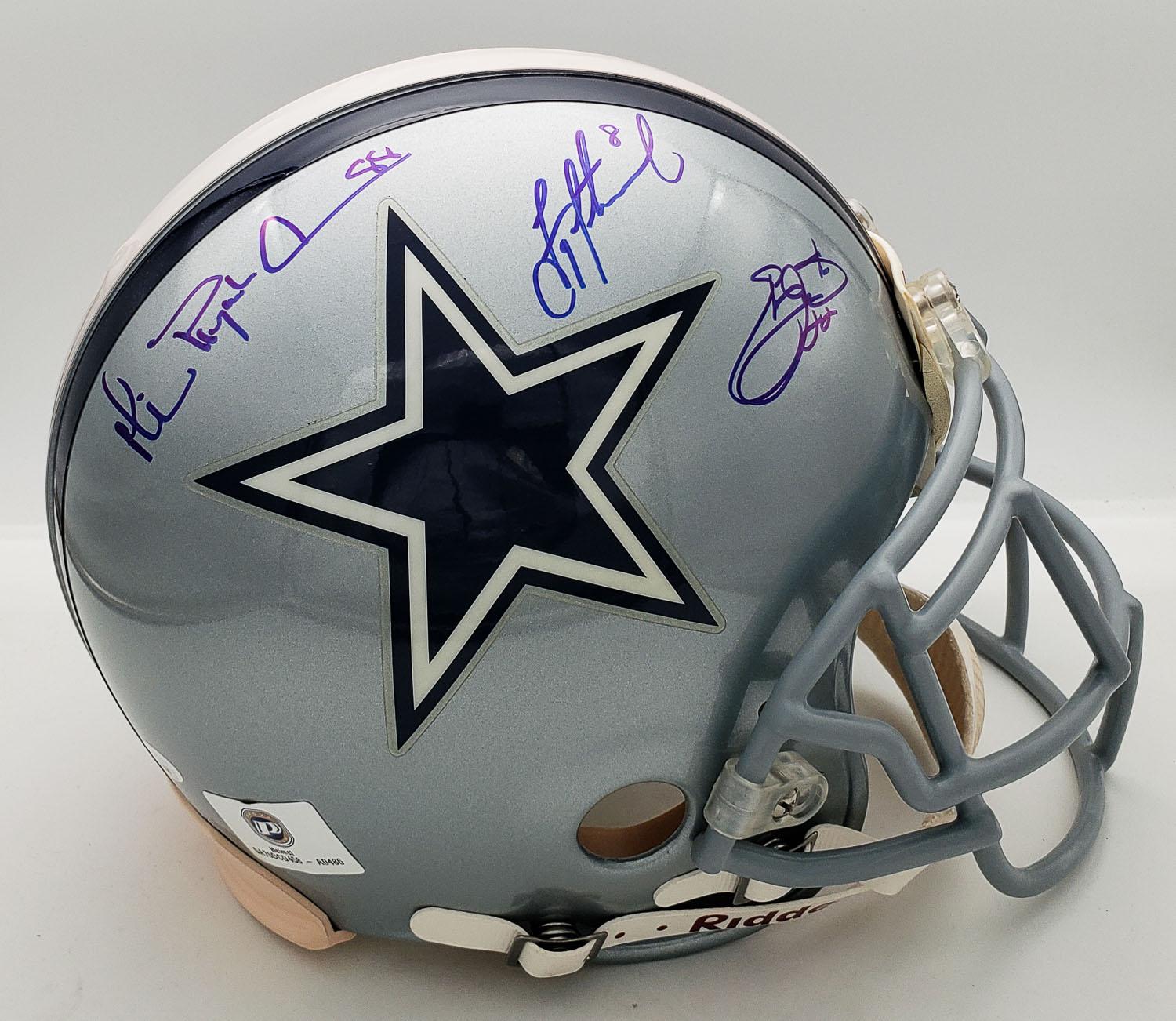 Authentic Helmet: Troy Aikman, Emmitt Smith & Michael "Playmaker" Irvin Signed Full Size Cowboys VSR4 Authentic Helmet (JSA COA)