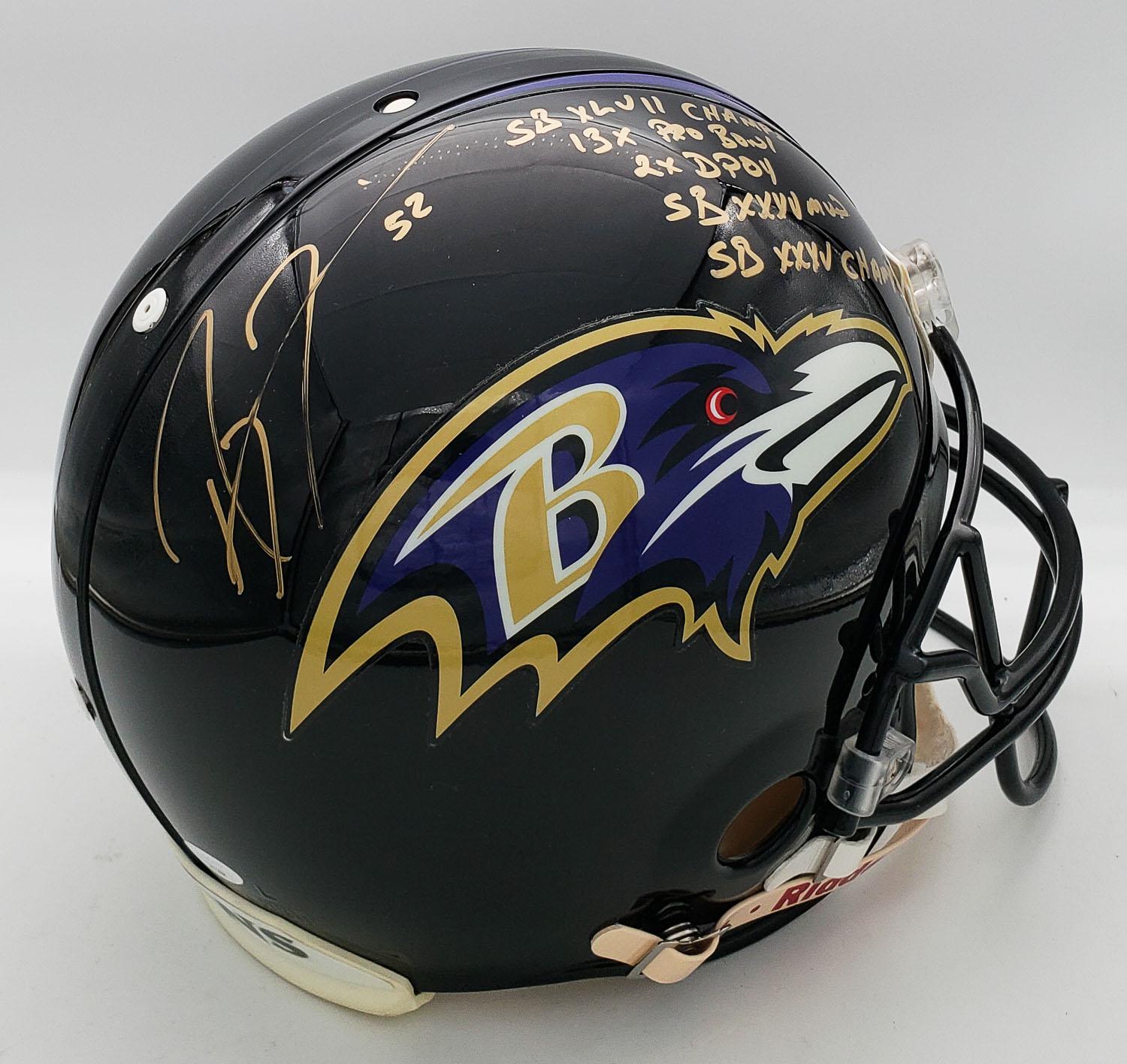 Authentic Helmet: Ray Lewis 5x Inscribed & Signed Full Size Baltimore Ravens Authentic Helmet (JSA Hologram)