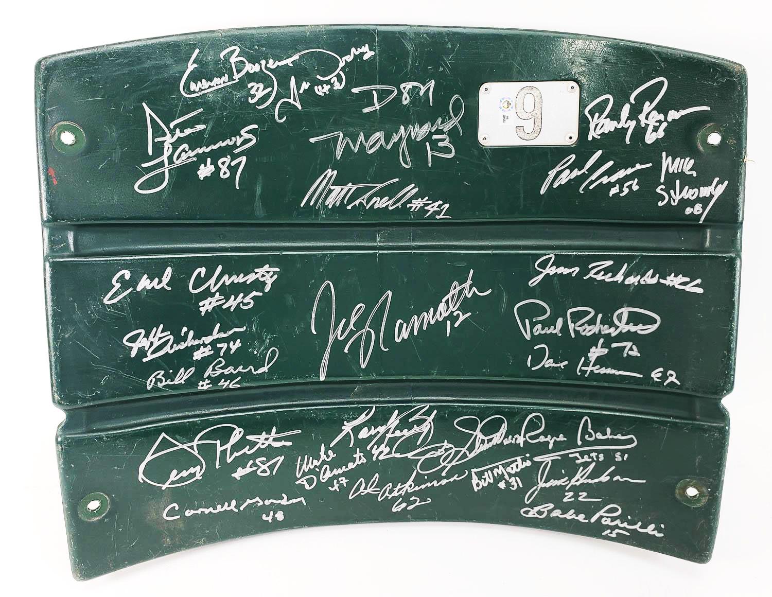 1969 New York Jets Super Bowl Champion Team (x25 w/ Joe Namath) Signed Shea Stadium Seatback (JSA LOA)