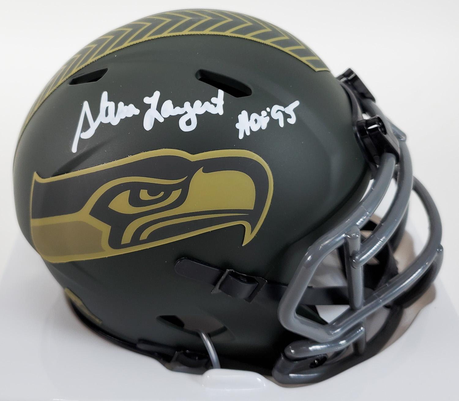 Steve Largent "HOF 95" Signed Seattle Seahawks 2025 Salute To Service Speed Mini Helmet (Beckett Witness Certified)