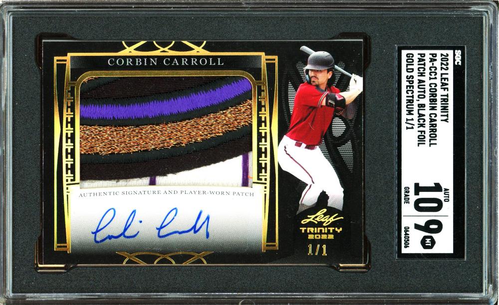 Corbin Carroll 2022 Leaf Trinity Gold Spectrum Black Foil Patch Auto Card 1/1 SGC 9 Auto 10!