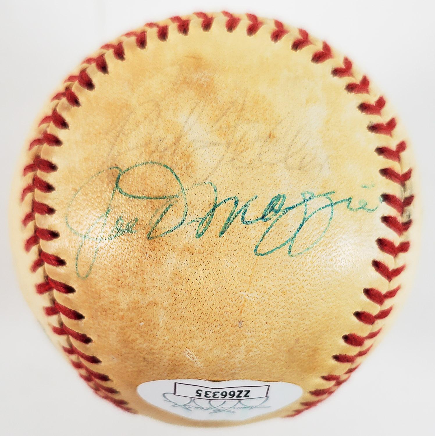 Joe DiMaggio, Stan Musial, Ernie Banks, Bob Feller, Red Schoendienst & Whitey Herzog Signed ONL Feeney Baseball (JSA LOA)