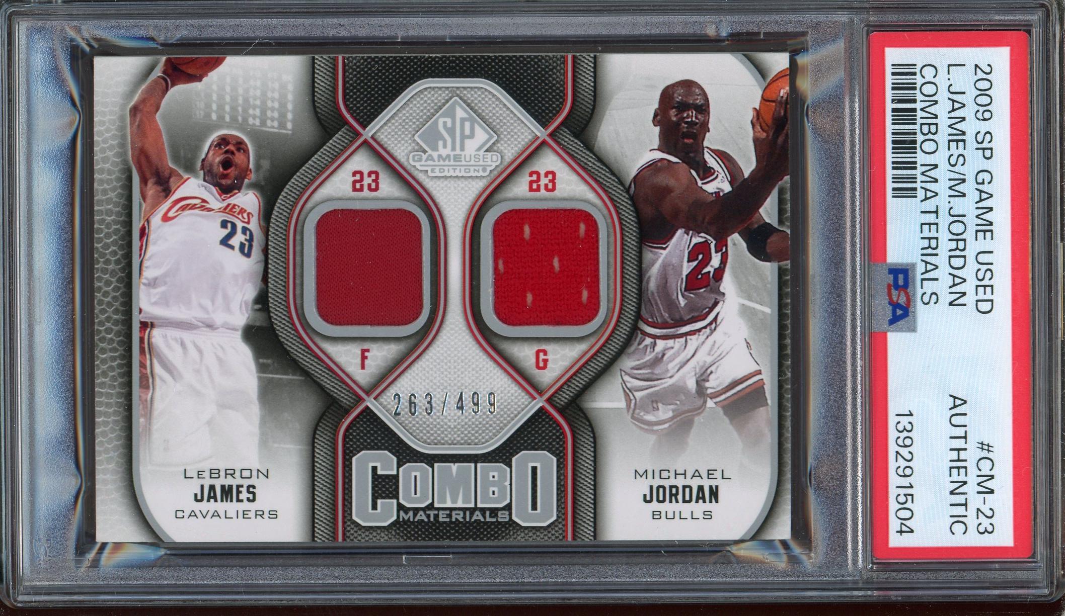 LeBron James & Michael Jordan 2009 SP Game Used Combo Materials Dual Game Used Patch Card /499 PSA