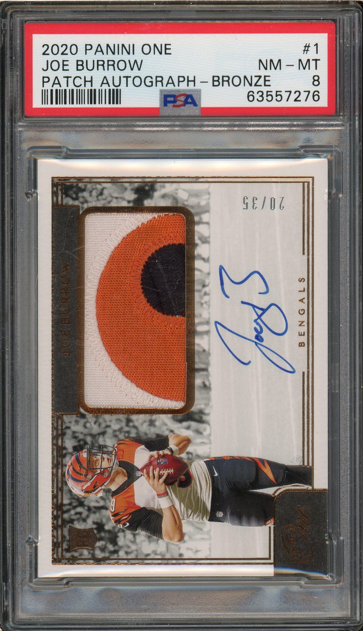 Joe Burrow 2020 Panini One Bronze Patch Auto Card /35 PSA 8: POP 6, 6 Higher!