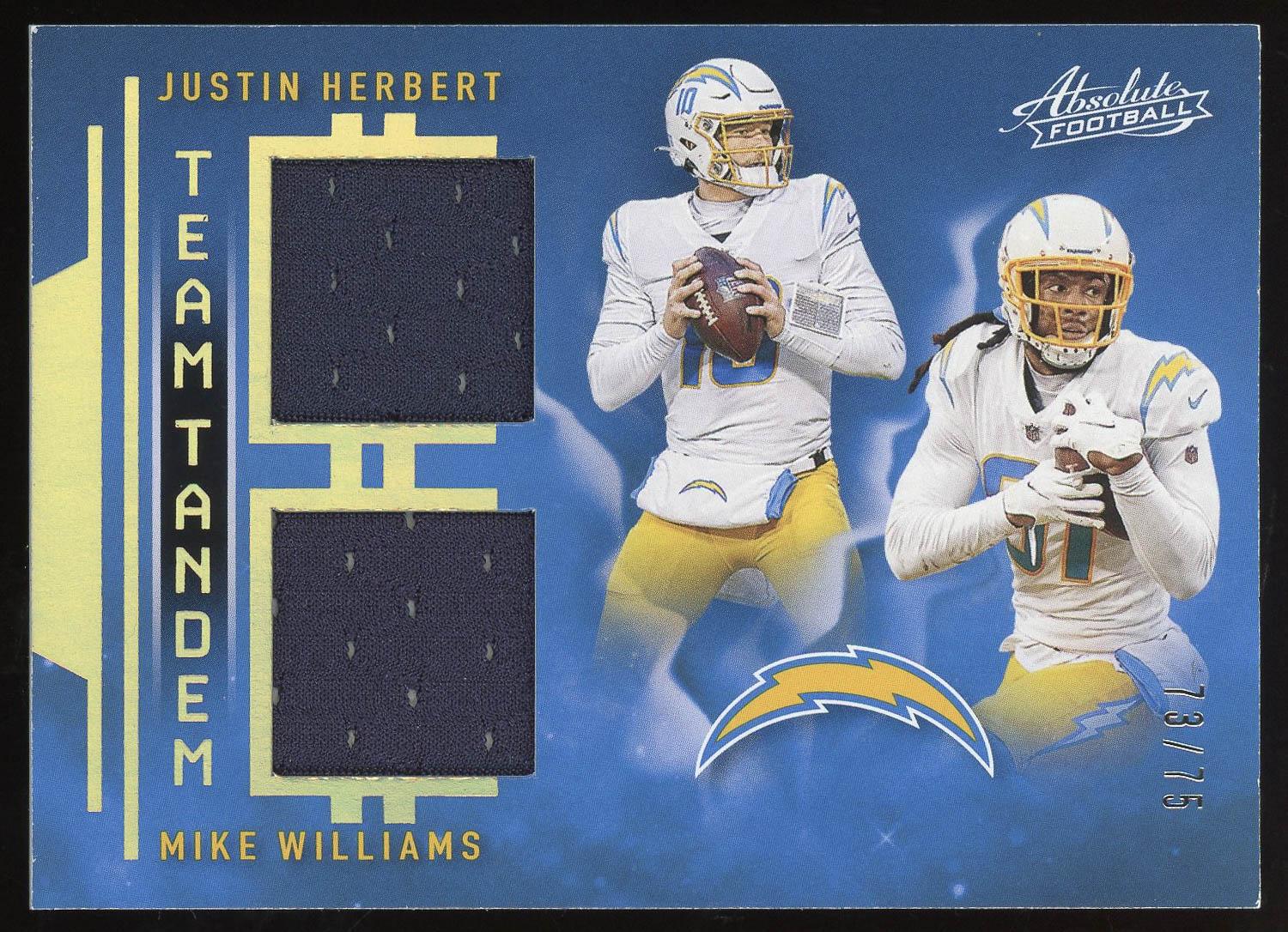Justin Herbert & Mike Williams 2021 Panini Absolute Dual Patch Team Tandems Card /75