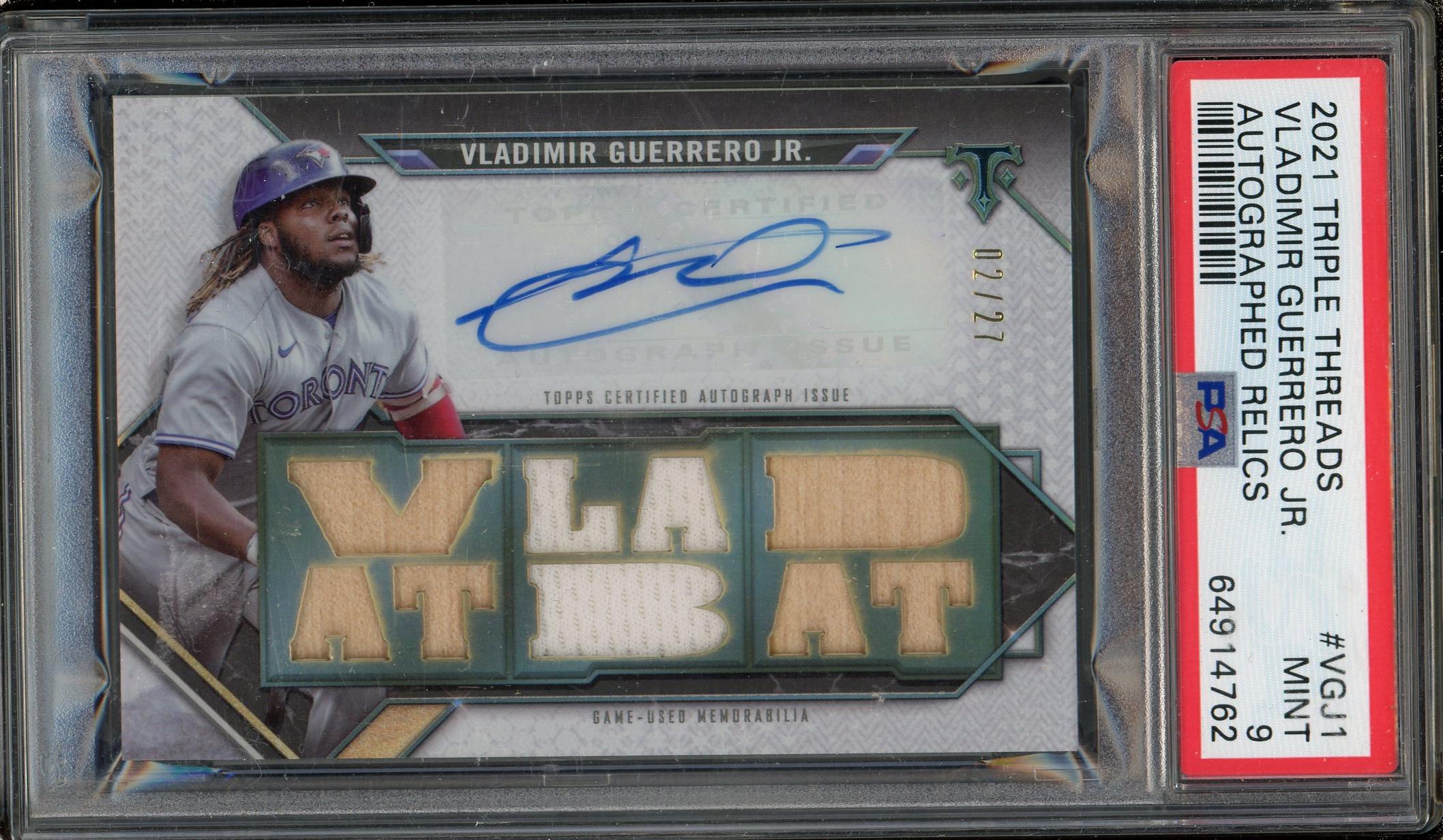 Vladimir Guerrero Jr. 2021 Topps Triple Threads Triple Patch Auto Card /27 PSA 9: POP 4, None Higher!