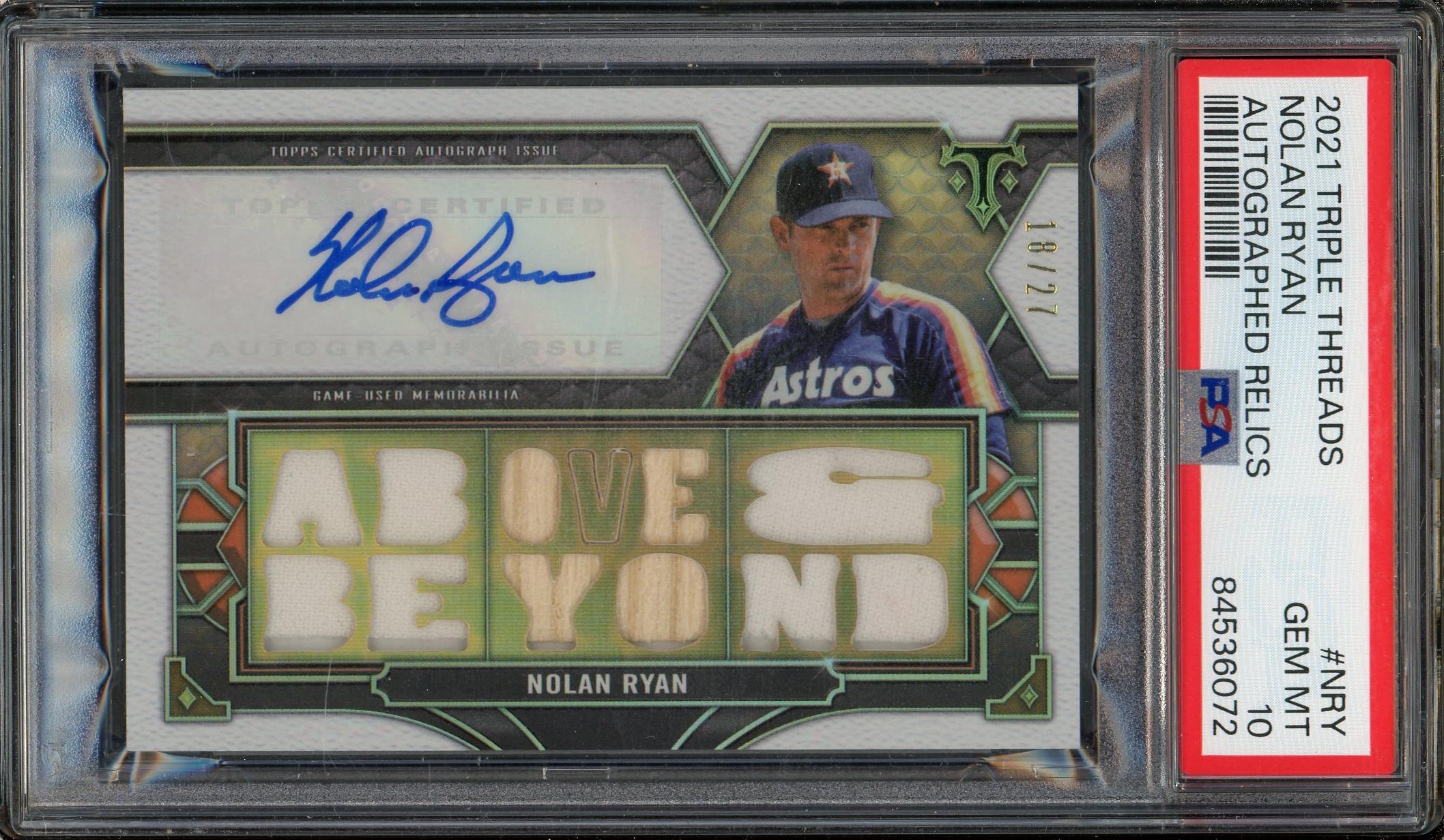 Nolan Ryan 2021 Topps Threads Triple Patch Auto Card /27 PSA Gem Mint 10 POP 1!