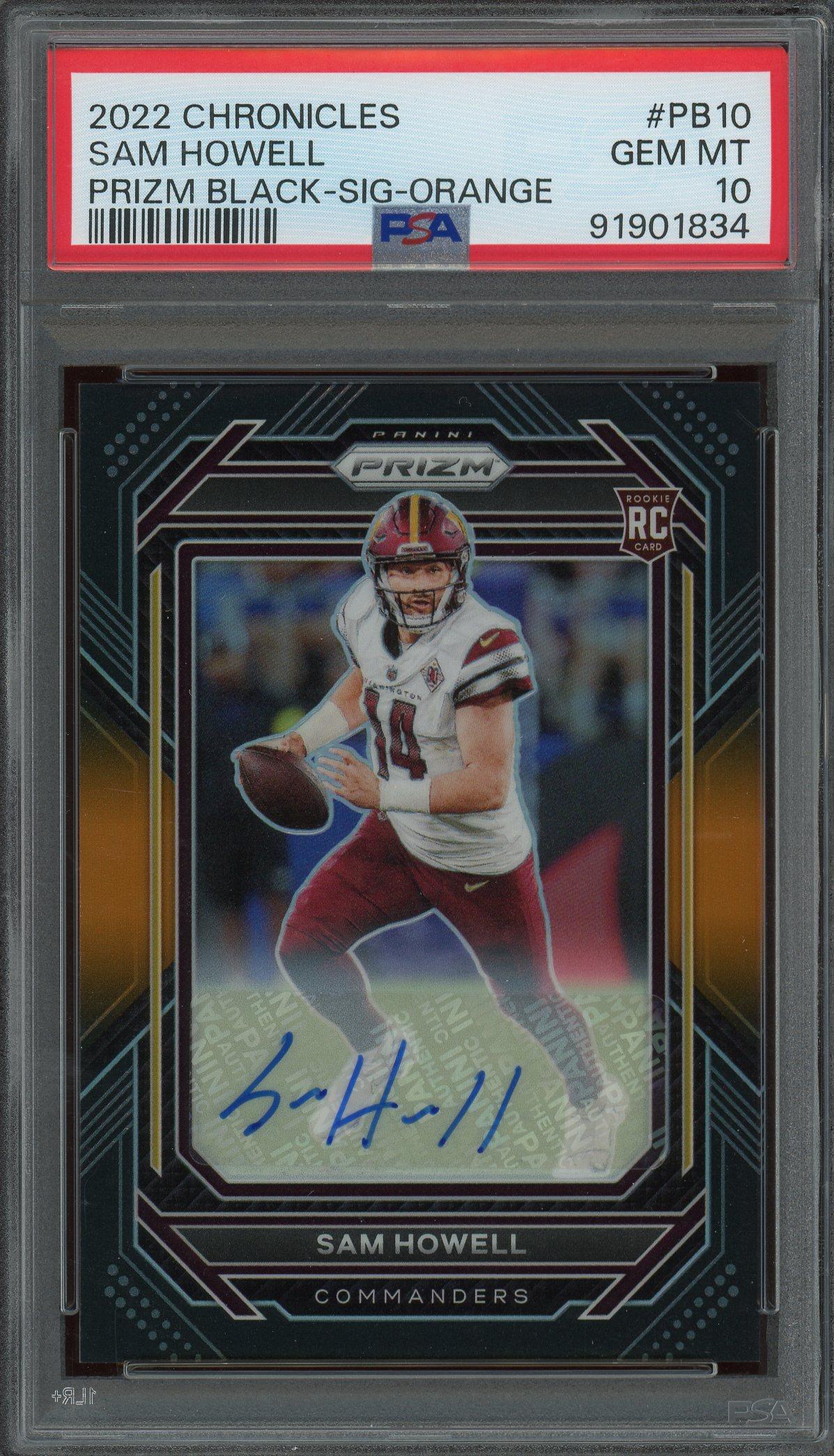 Sam Howell 2022 Panini Chronicles Prizm Black Signature Orange Rookie Auto Card /75! PSA Gem Mint 10 POP 18!