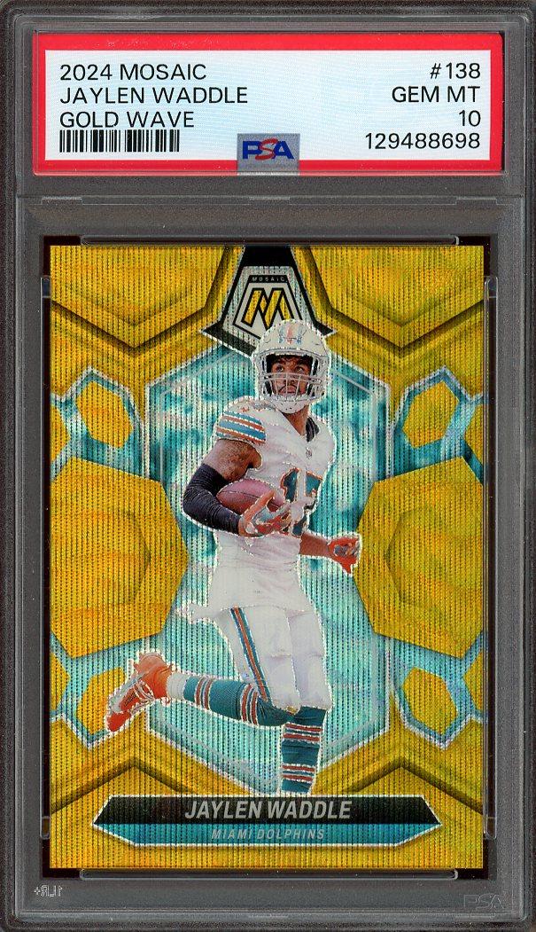 Jaylen Waddle 2024 Panini Mosaic Gold Wave Card /17 PSA Gem Mint 10 POP 1!