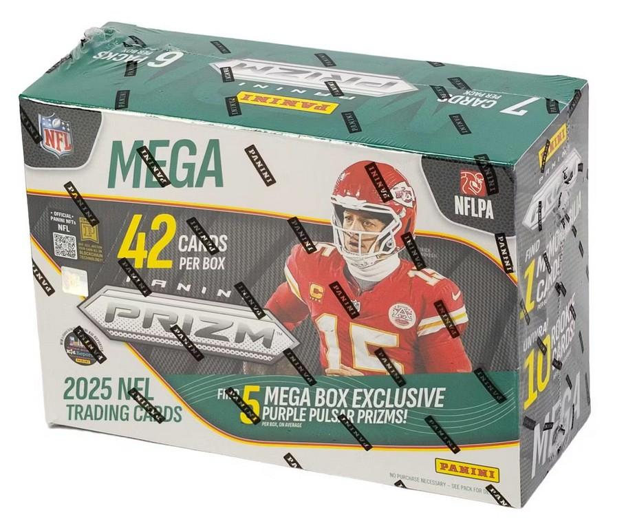 Sealed 2025 Panini Prizm NFL Football Card Mega Box: Jaxson Dart, Tyler Shough, Cam Ward, Shedeur Sanders, Travis Hunter