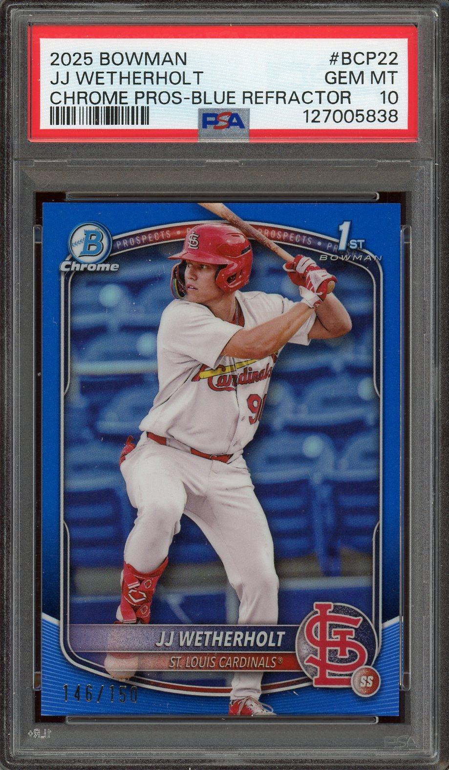 J.J. Wetherholt 2025 Bowman Chrome Prospects 1st Bowman Blue Refractor Card /199 PSA Gem Mint 10 POP 17!