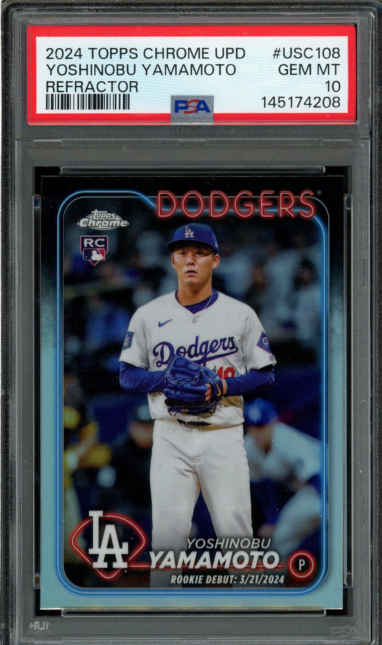 Yoshinobu Yamamoto 2024 Topps Chrome Update Refractor Rookie Card PSA Gem Mint 10!