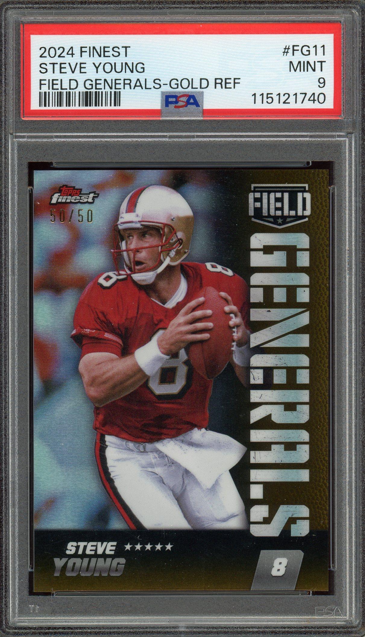 Steve Young 2024 Topps Finest Field Generals Gold Refractor Card /50 PSA 9: POP 1, None Higher!