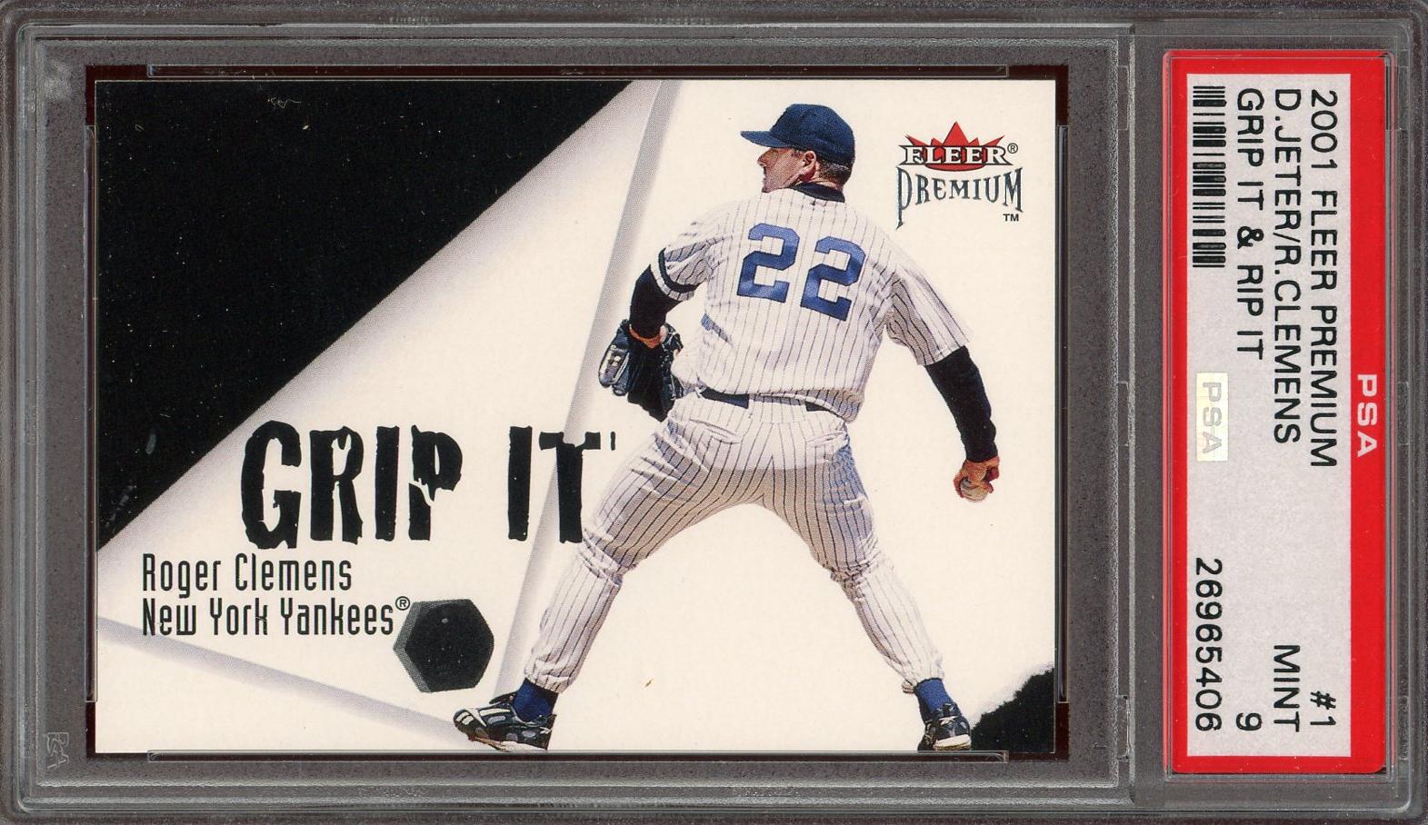 Derek Jeter & Roger Clemens 2001 Fleer Premium Grip It & Rip It Card PSA 9 POP 5, 5 Higher!