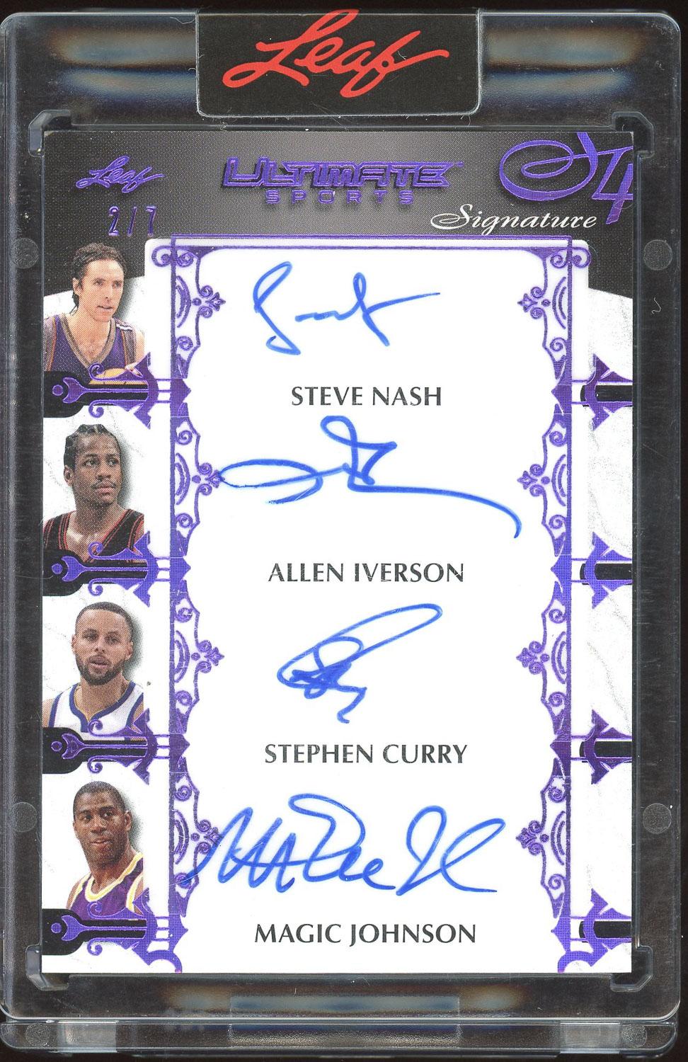 Stephen Curry, Magic Johnson, Steve Nash & Allen Iverson 2024 Leaf Ultimate Signature Auto Card /7