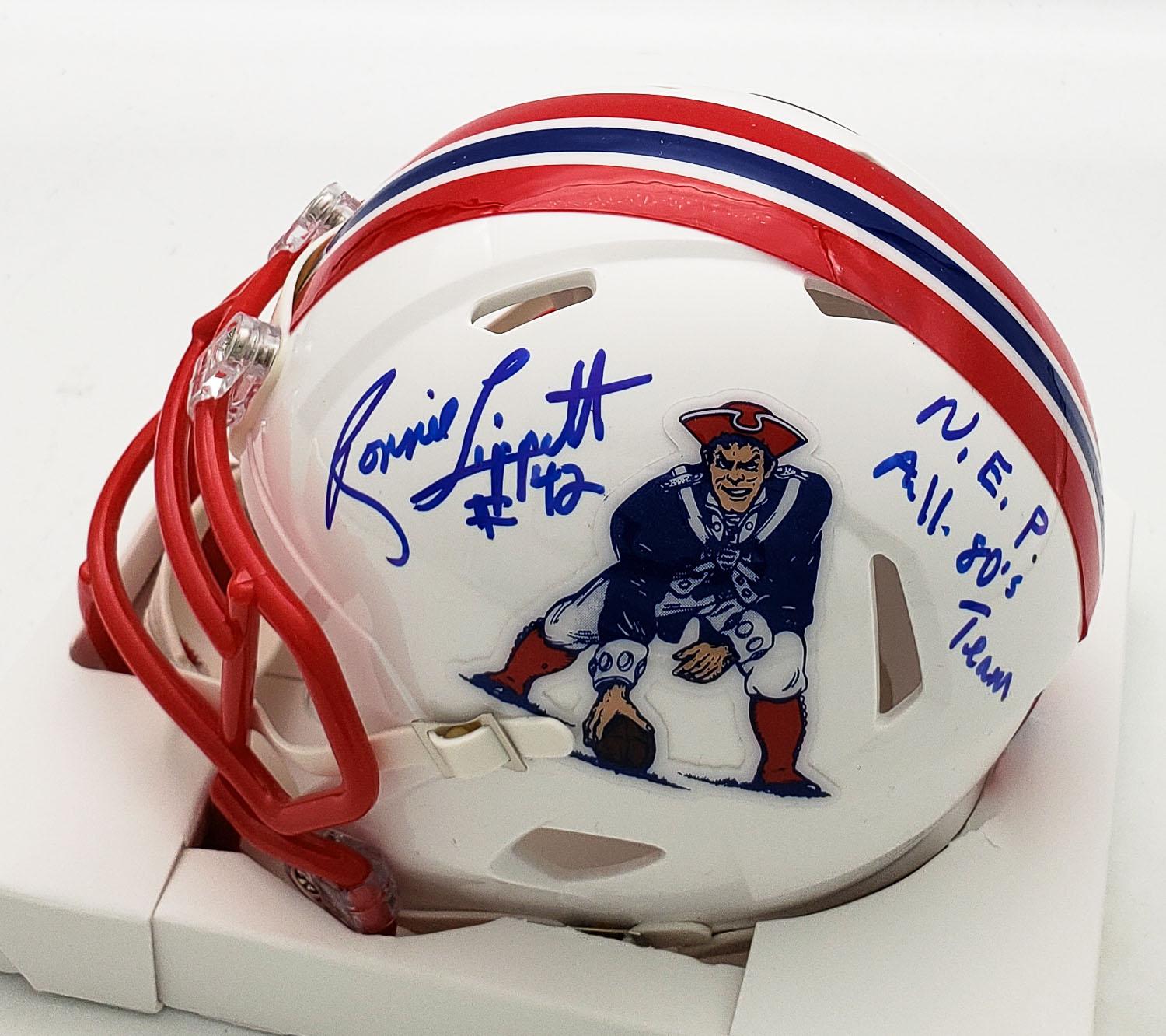 Ronnie Lippett "NEP All 80s Team" Signed Patriots Throwback Speed Mini Helmet (Beckett Witness Certified)