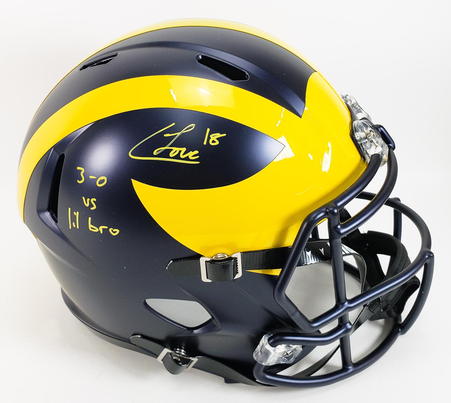 Colston Loveland "3-0 vs lil bro" Signed Full Size Replica Michigan Wolverines Speed Helmet (Beckett Witness Certified)