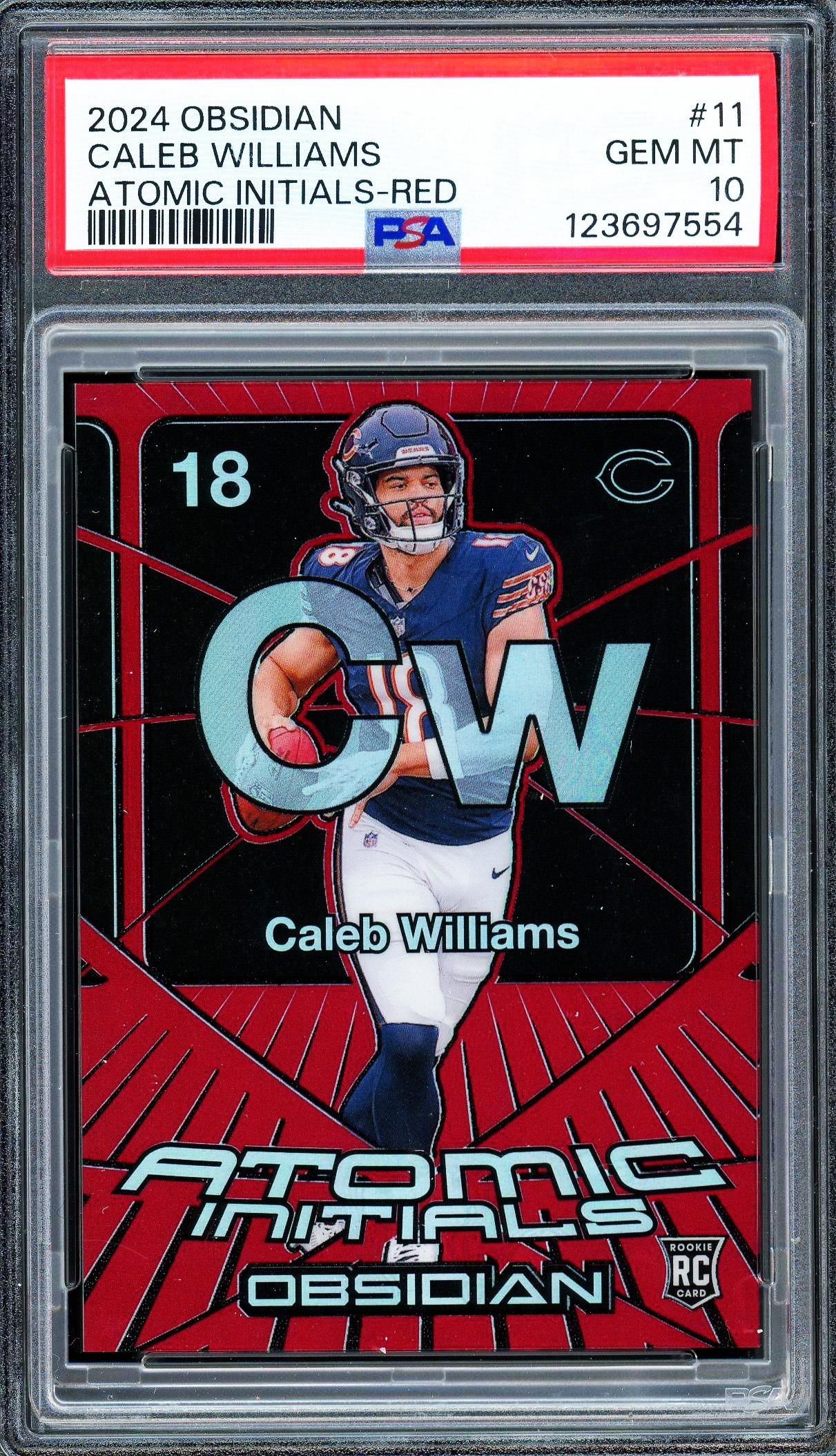 Caleb Williams 2024 Panini Obsidian Atomic Initials Red Rookie Card 55/75! PSA Gem Mint 10 POP 11!
