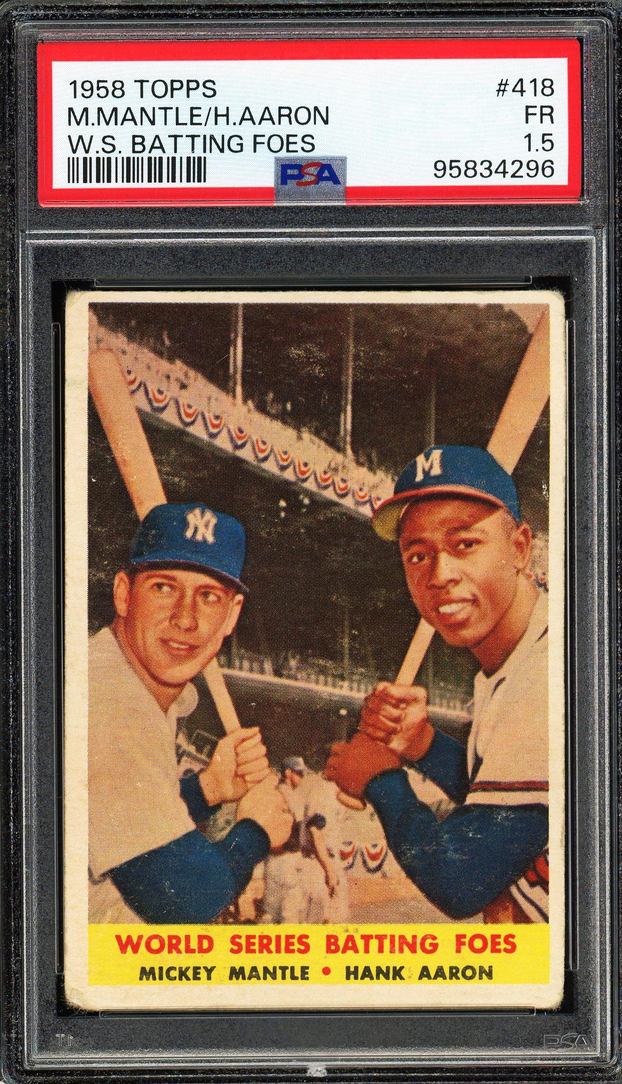 Mickey Mantle & Hank Aaron 1958 Topps World Series Batting Foes Card #418 PSA 1.5