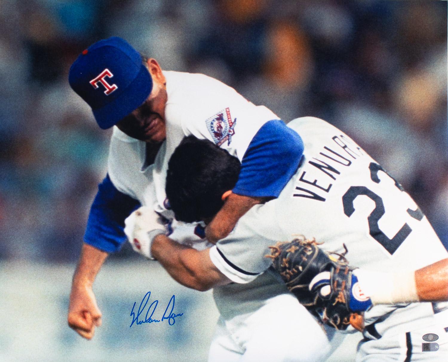 Nolan Ryan Signed Texas Rangers Ventura Fight 16x20 Photo (AI Verified COA)