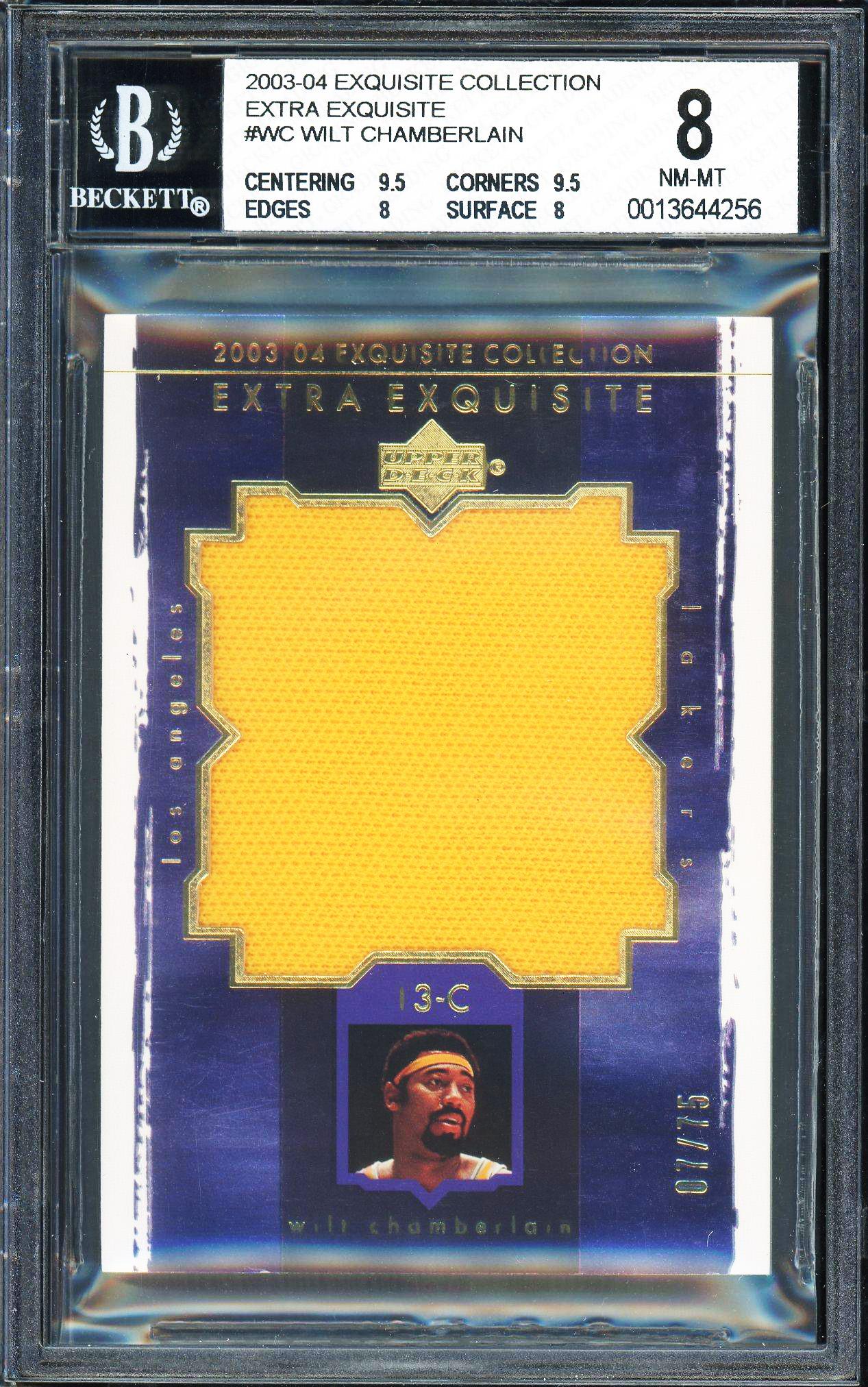 Wilt Chamberlain 2003 Upper Deck Exquisite Collection Extra Exclusive Game Used Patch Card 7/75! BGS 8