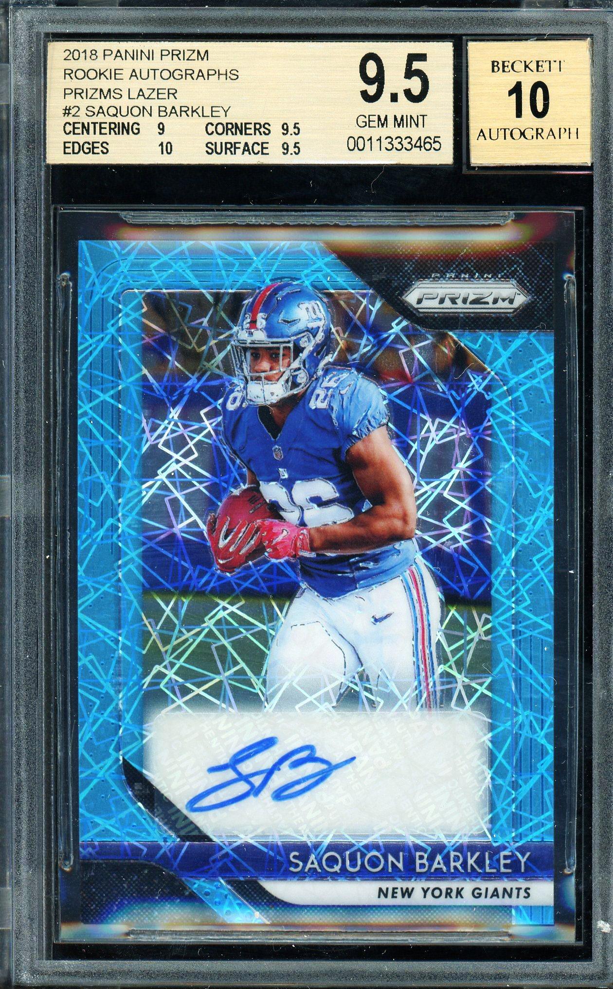 Saquon Barkley 2018 Panini Prizm Lazer Autograph Rookie Card BGS Gem Mint 9.5 Auto 10 POP 9!