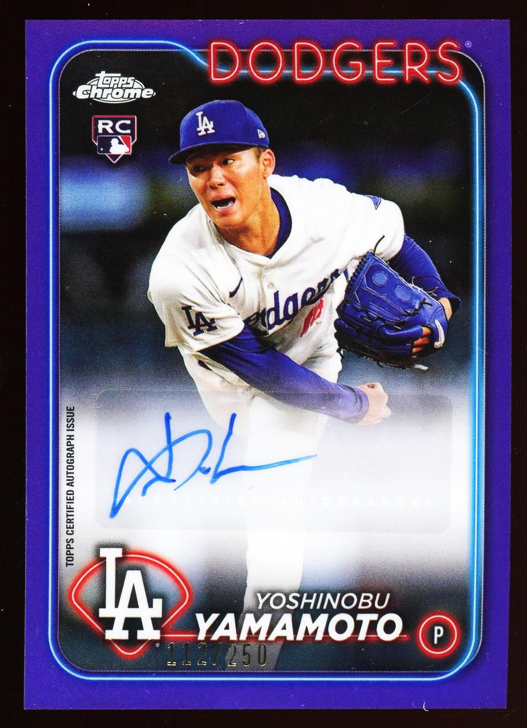 Yoshinobu Yamamoto 2024 Topps Chrome Purple Refractor Autograph Rookie Card 112/250!