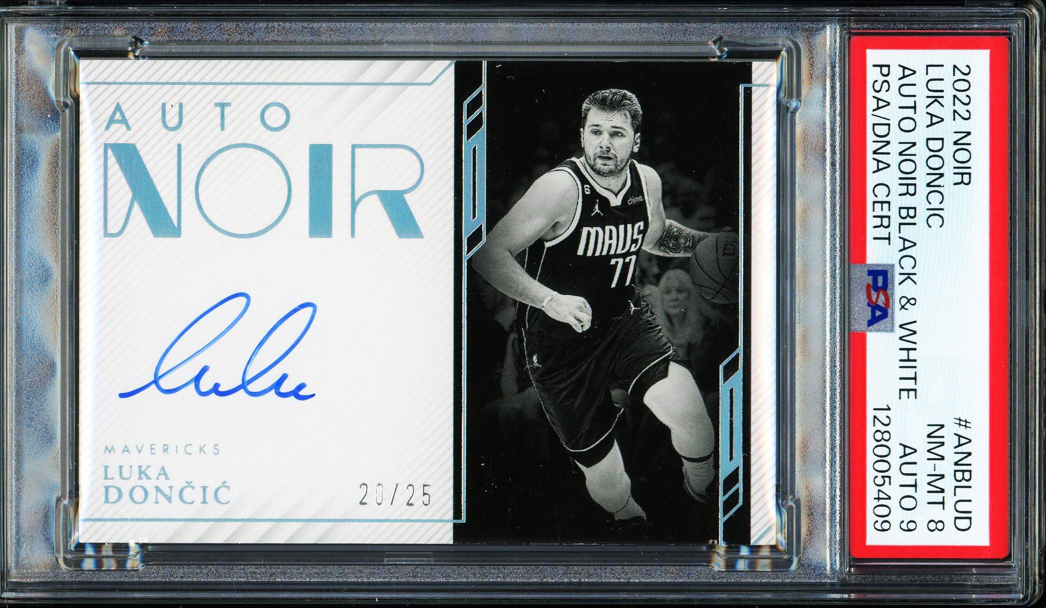 Luka Doncic 2022 Panini Noir Black & White Autograph Card 20/25! PSA 8 Auto 9: POP 1, None Higher!