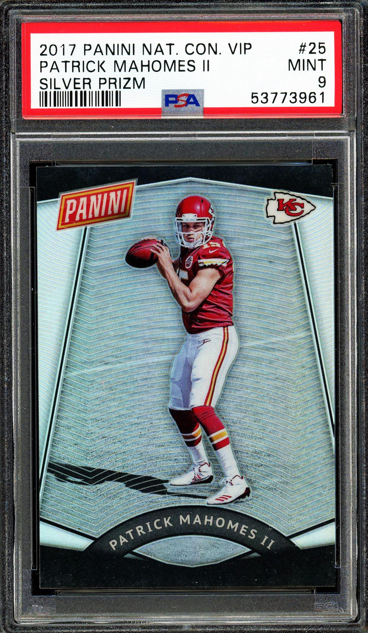 Patrick Mahomes II 2017 Panini National Convention VIP Silver Prizm Rookie Card #25 PSA 9: POP 19, 13 Higher!