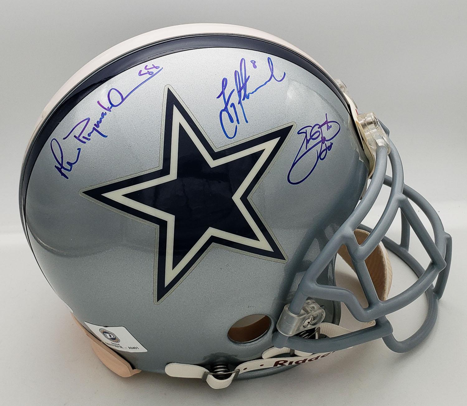 Authentic Helmet: Emmitt Smith, Troy Aikman & Michael "Playmaker" Irvin Signed Full Size Dallas Cowboys Authentic Helmet (JSA & Prova Holograms)