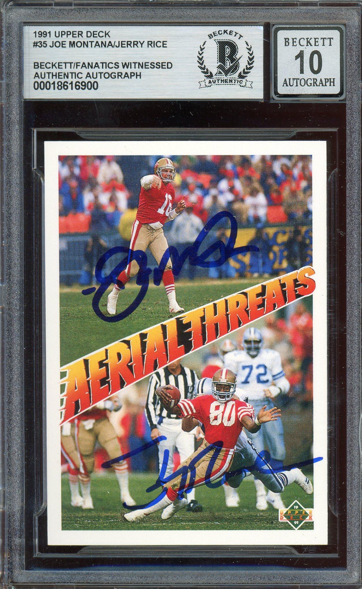 Joe Montana & Jerry Rice Signed 1991 Upper Deck Card #35 Beckett & Fanatics Witness w/ 10 Auto!