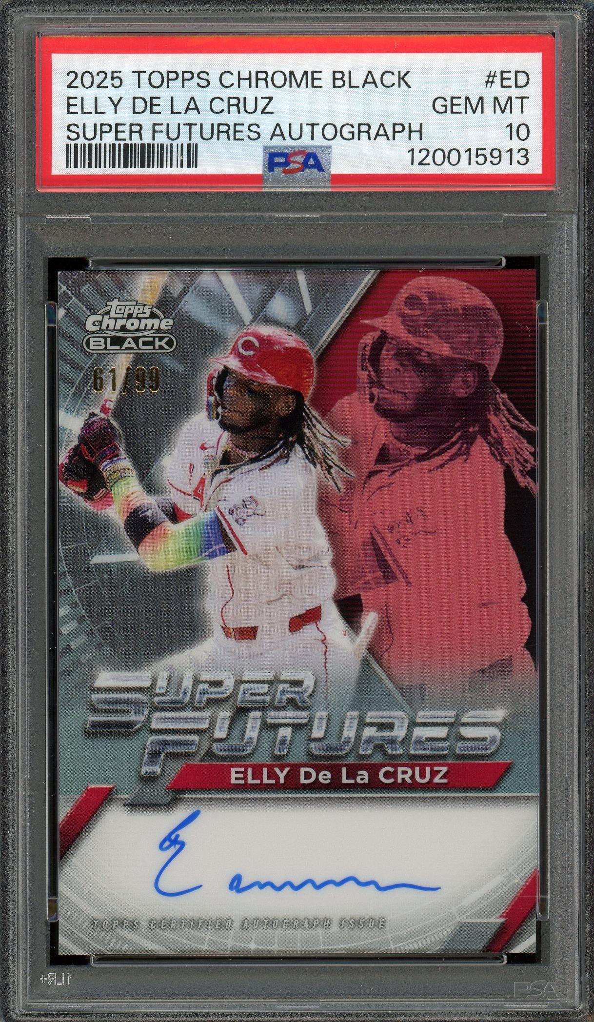 Elly De La Cruz 2025 Topps Chrome Black Super Future Autograph Card 61/99! PSA Gem Mint 10 POP 5!