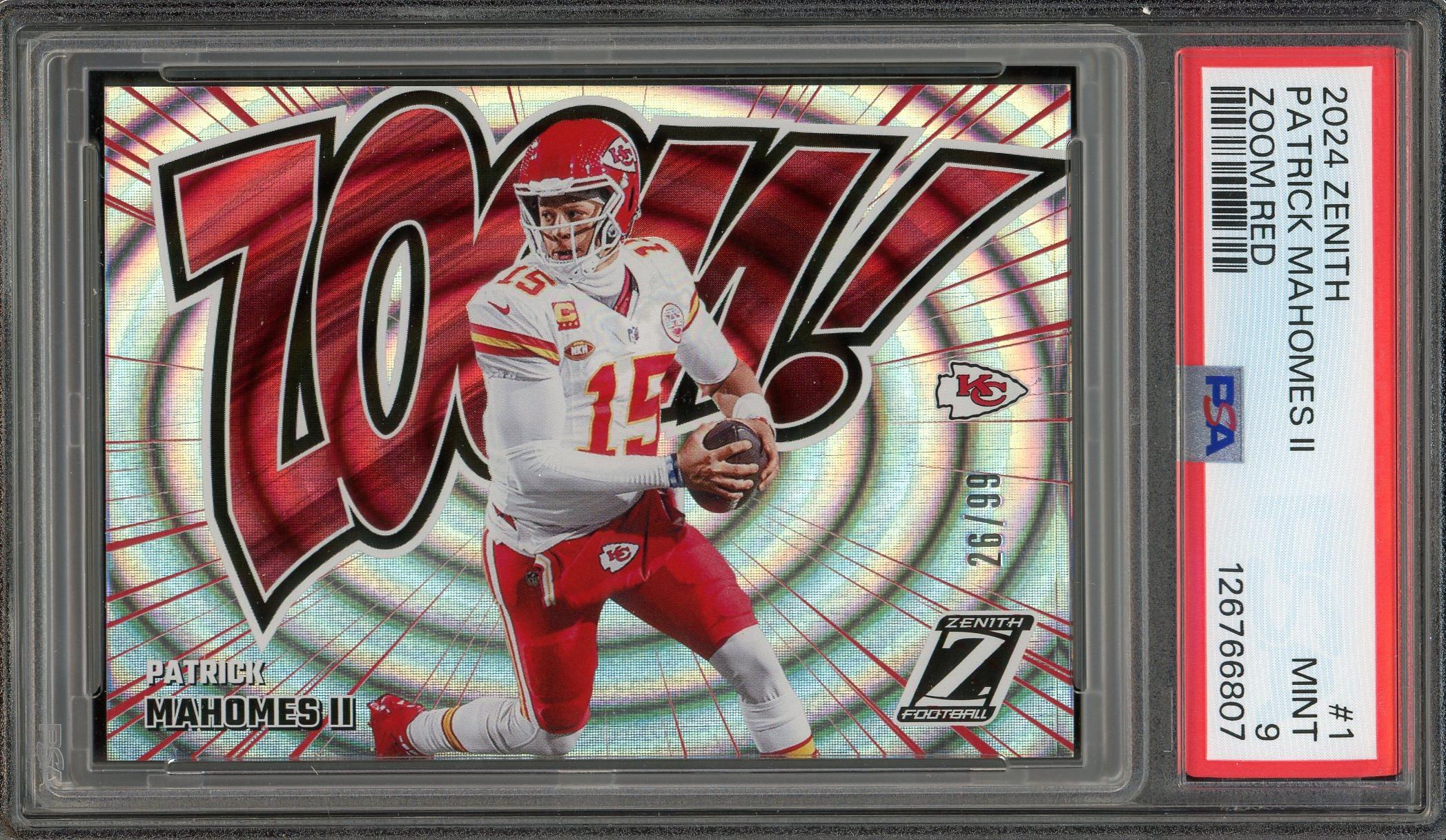 Patrick Mahomes 2024 Panini Zenith Zoom Red Card 26/99! PSA 9: POP 23, None Higher!