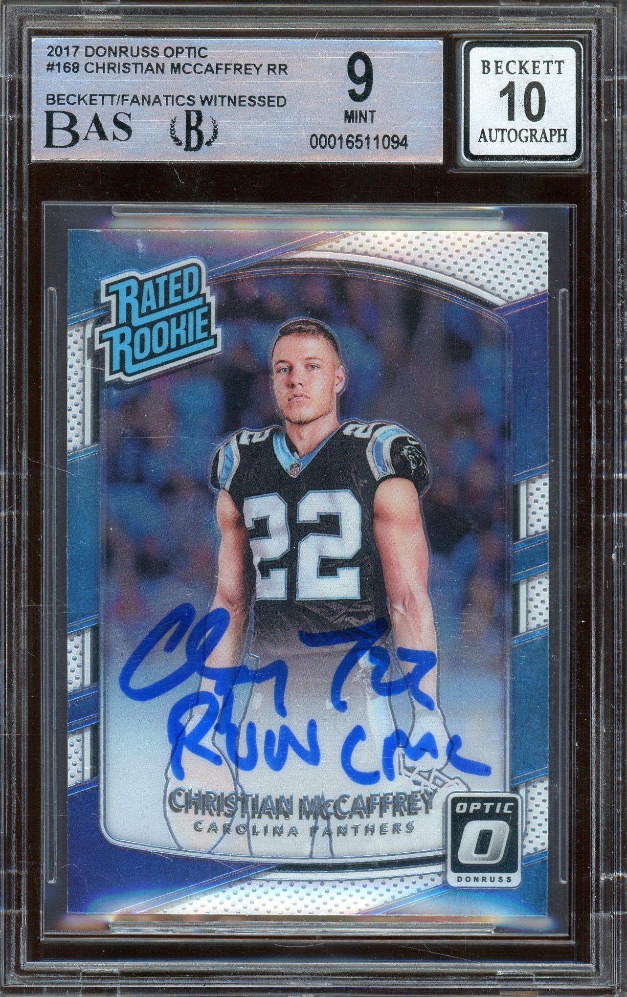 Christian McCaffrey 'Run CMC' Signed 2017 Panini Donruss Optic Rookie Card #168 BGS 9 with Graded 10 Autograph! (BAS and Fanatics Witness)