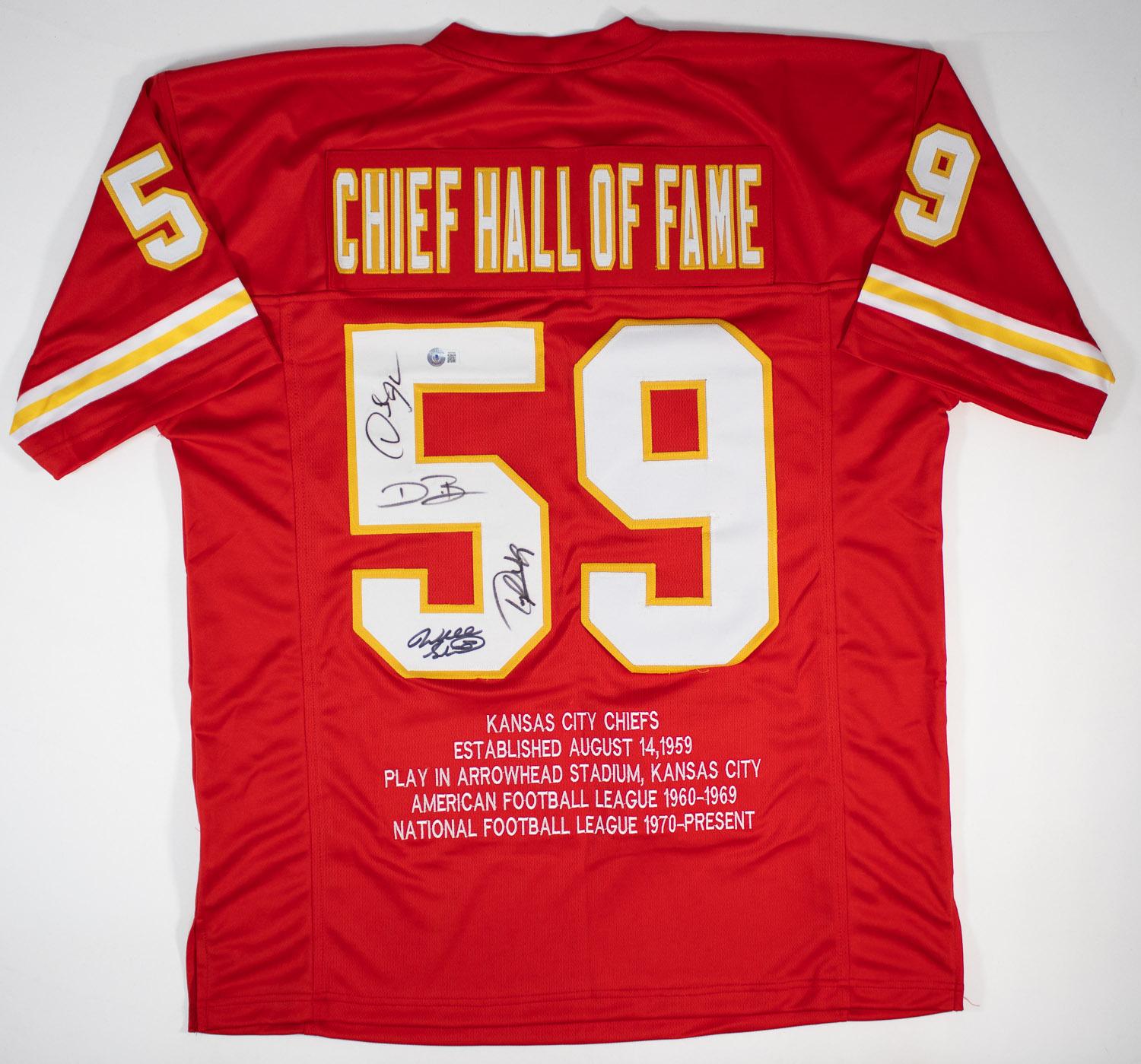 Dwayne Bowe, Derrick Johnson, Tony Richardson, and Will Shields Signed Kansas City Chiefs 'Chief Hall of Fame' Custom Jersey (Beckett Witness Certified)