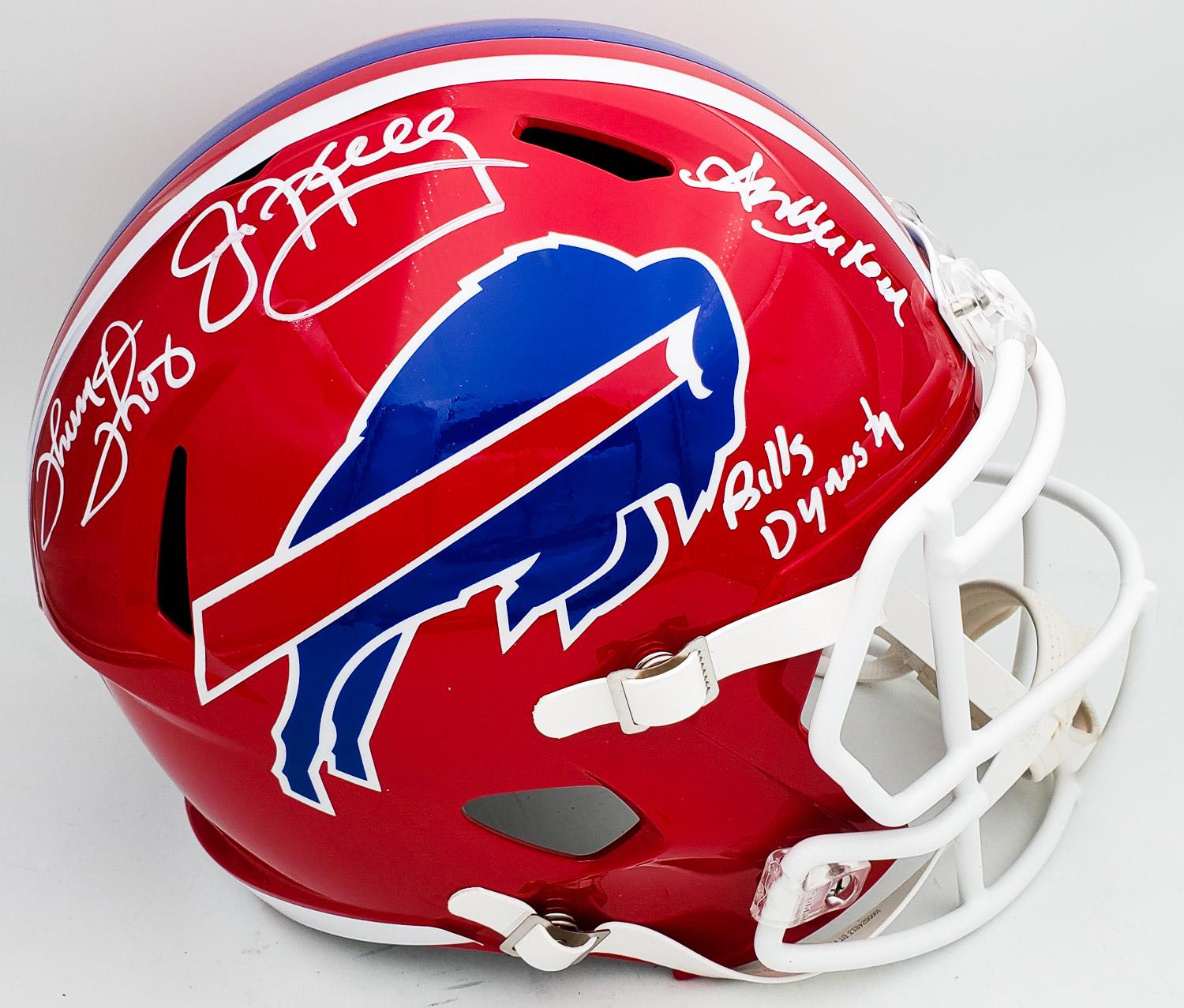 Jim Kelly, Thurman Thomas & Andre Reed "Bills Dynasty" Signed Full Size Replica Bills Speed Helmet (Beckett Witness Certified)