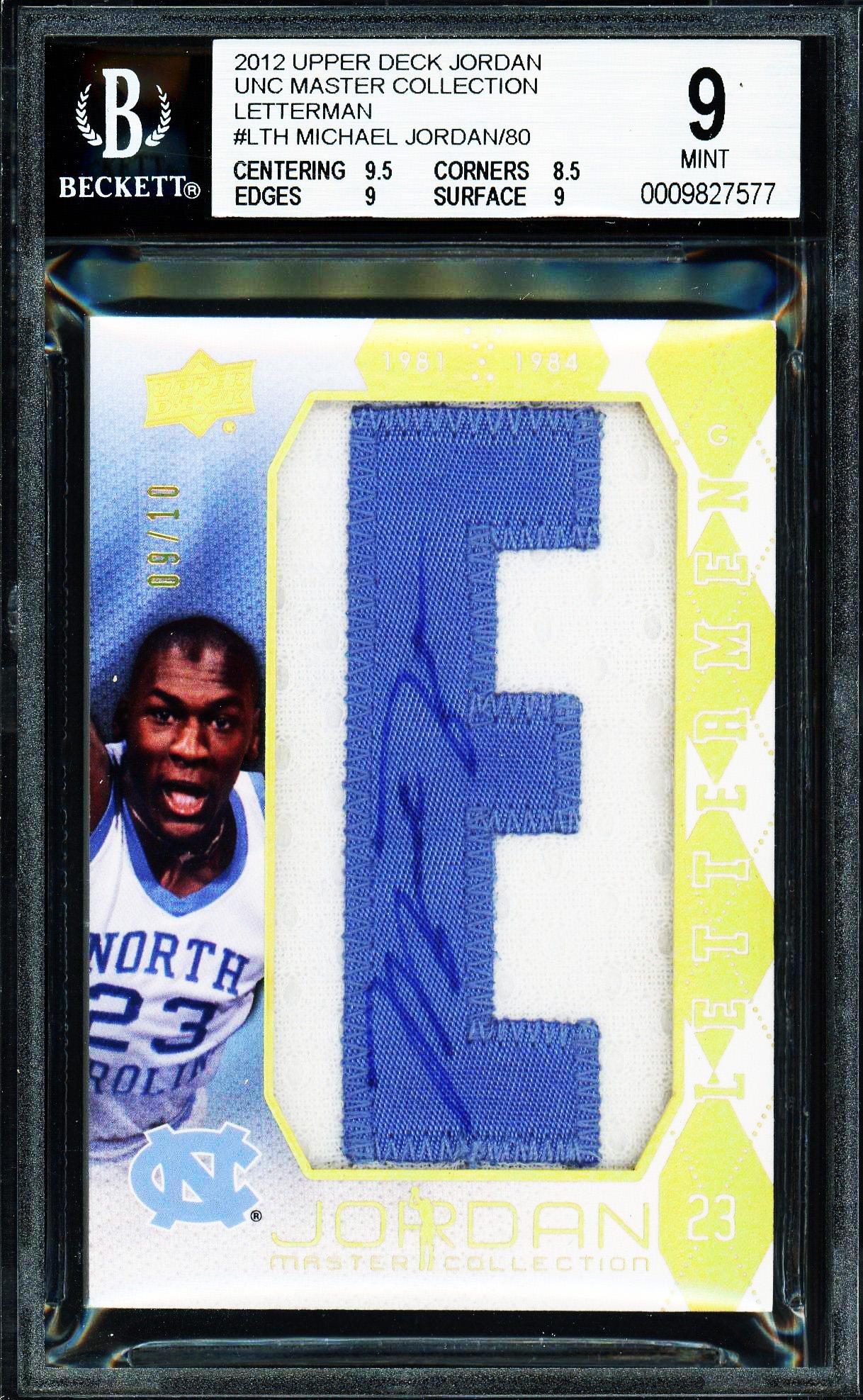 Michael Jordan 2012 Upper Deck Jordan UNC Master Collection Letterman Auto Card /10 BGS 9 Auto 10: POP 18, 10 Higher!