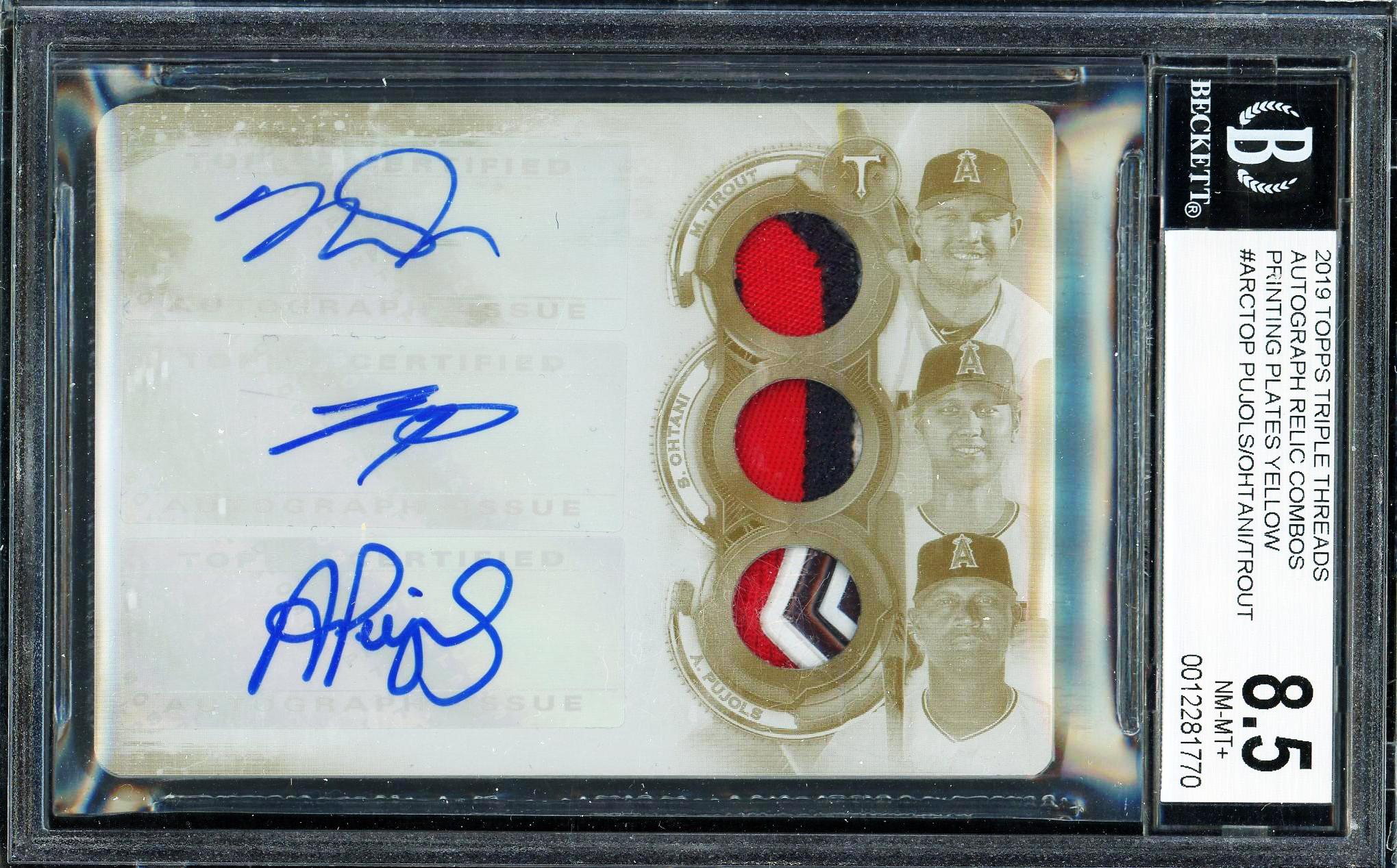 Mike Trout, Shohei Ohtani & Albert Pujols 2019 Topps Triple Threads Printing Plates Yellow Patch Auto Card 1/1! BGS 8.5 Auto 10