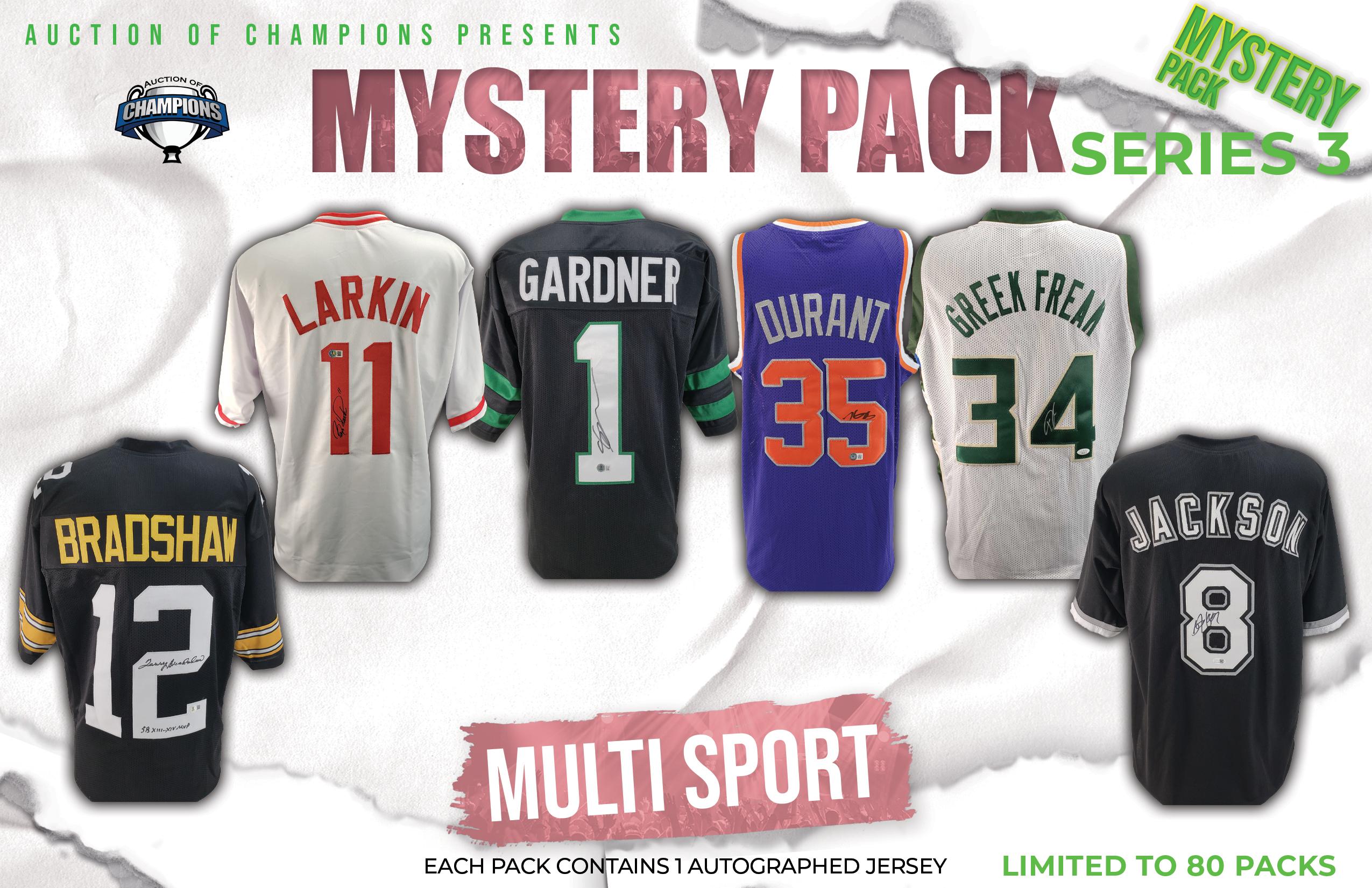 Multi-Sport Jersey Mystery Pack Series 3: Bo Jackson, Giannis, Kevin Durant, Terry Bradshaw & More! Limited to 80