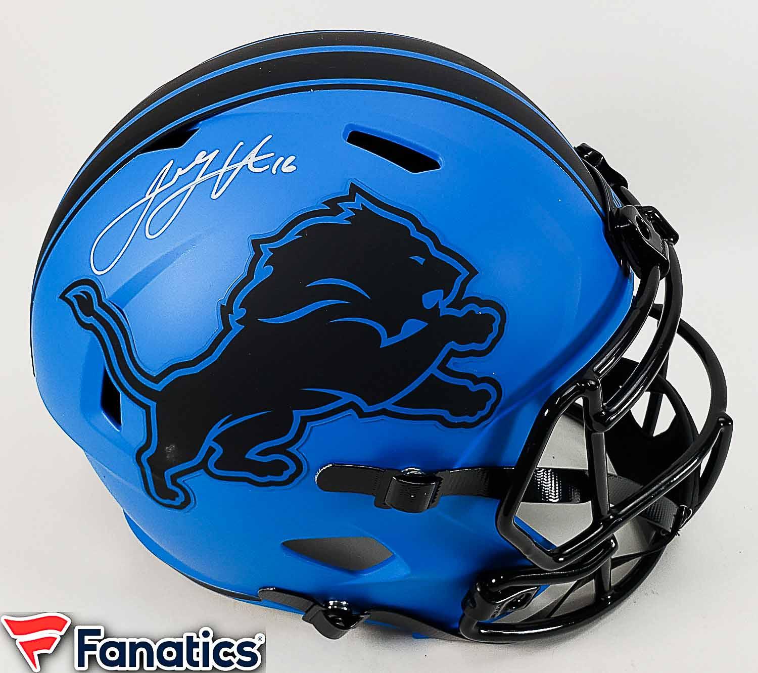 Jared Goff Signed Full Size Replica Detroit Lions Rave Alternate Speed Helmet (Fanatics Certified)