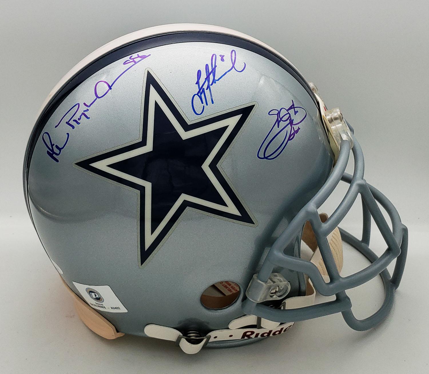 Authentic Helmet: Troy Aikman, Emmitt Smith & Michael "Playmaker" Irvin Signed Full Size Cowboys VSR4 Authentic Helmet (JSA COA)