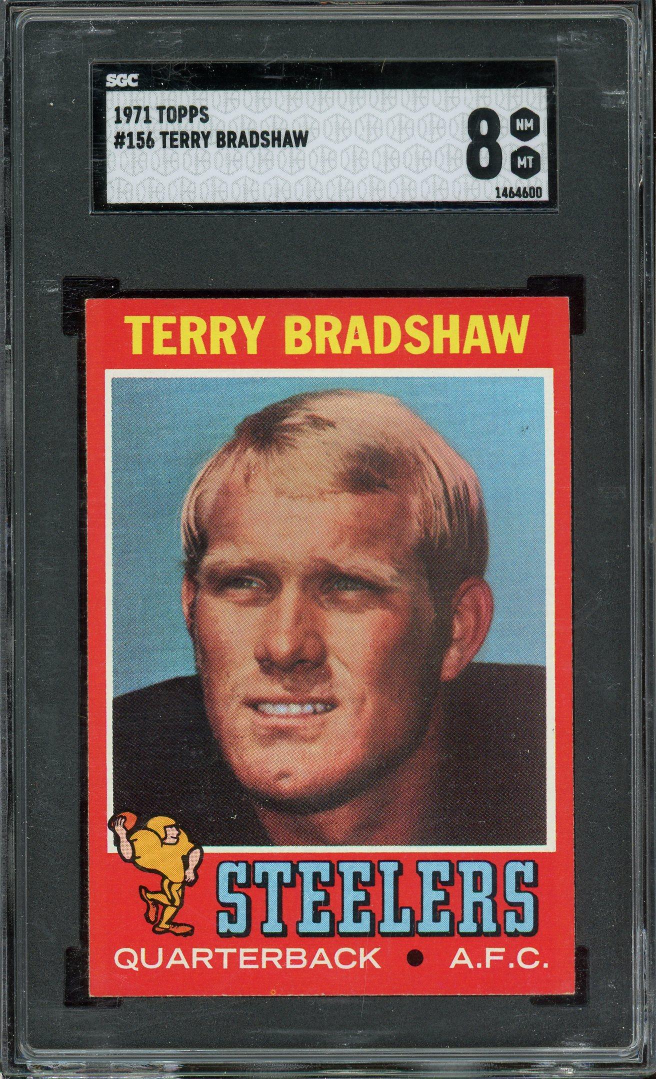Terry Bradshaw Pittsburgh Steelers 1971 Topps Rookie Card #156. This card has been graded NM MT 8 by SGC.