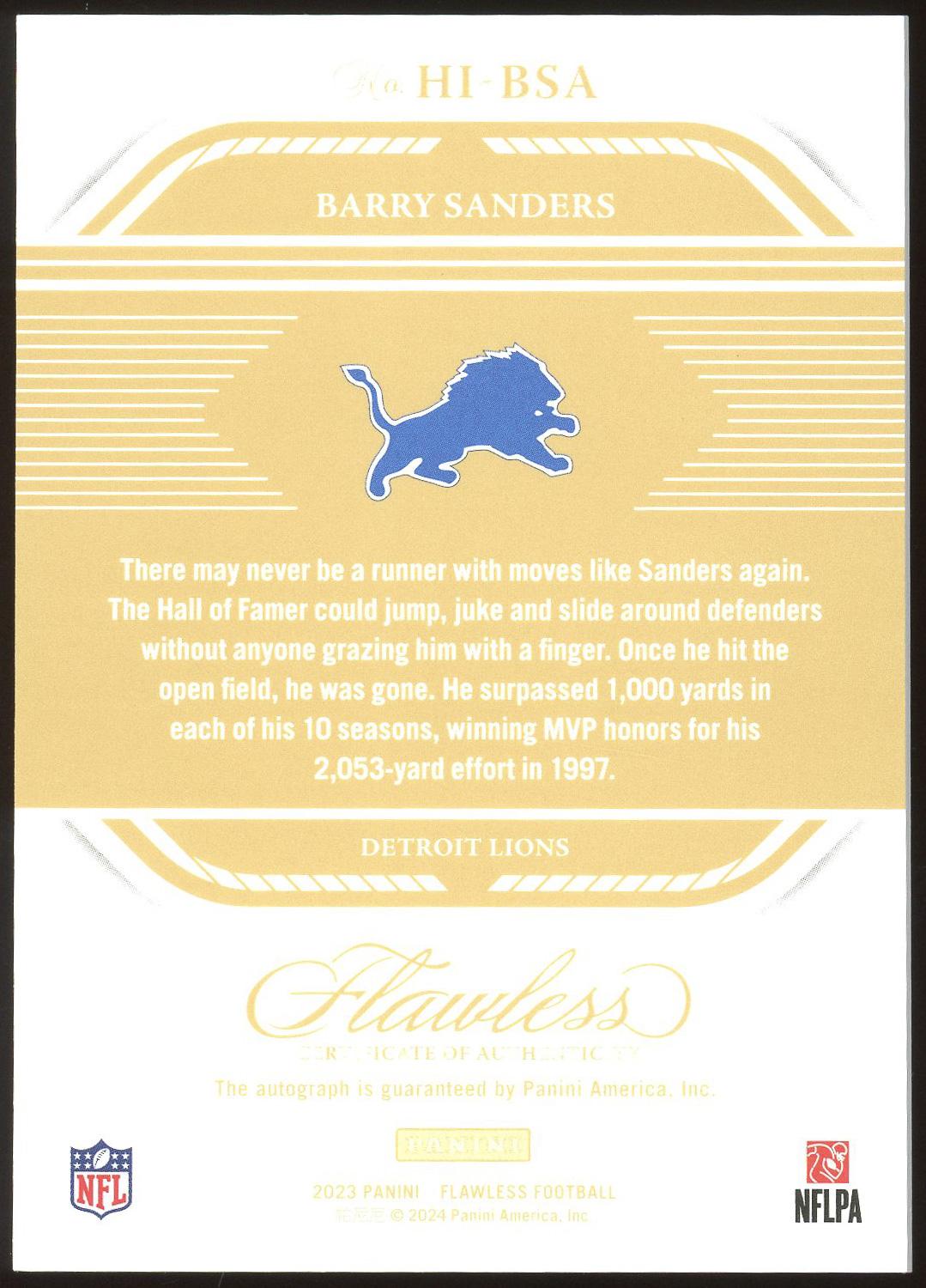 Barry Sanders 2023 Panini Flawless Honored Ink Autograph Card 10/20!