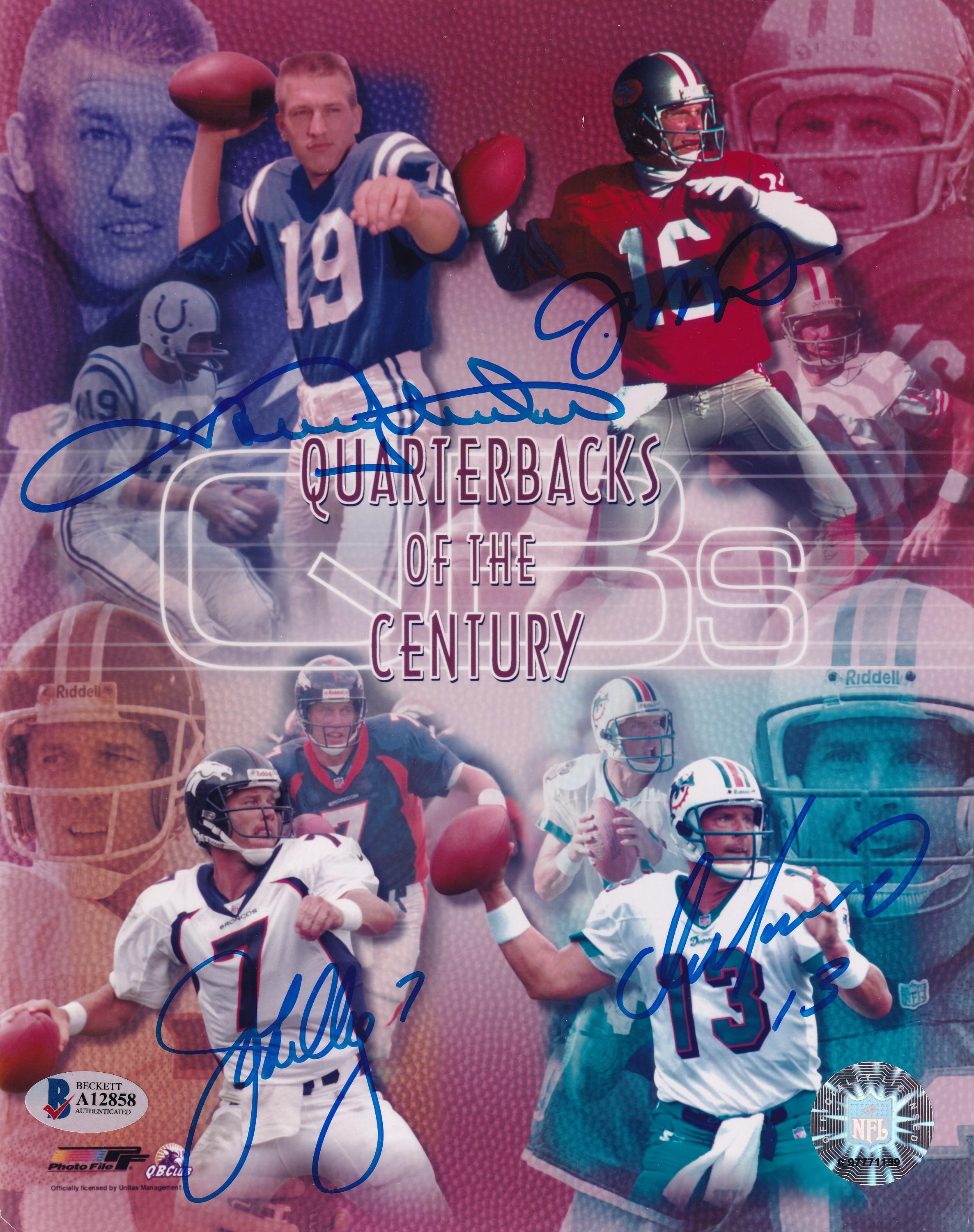 Joe Montana, John Elway, Johnny Unitas, Dan Marino Signed Quarterbacks of the Century 8x10 Photo (Beckett LOA)