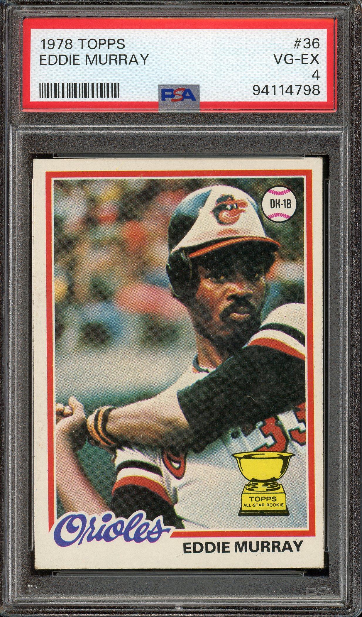 Eddie Murray Baltimore Orioles 1978 Topps Rookie Card #36. This card has been graded VG EX 4 by PSA (Professional Sports Authenticators).