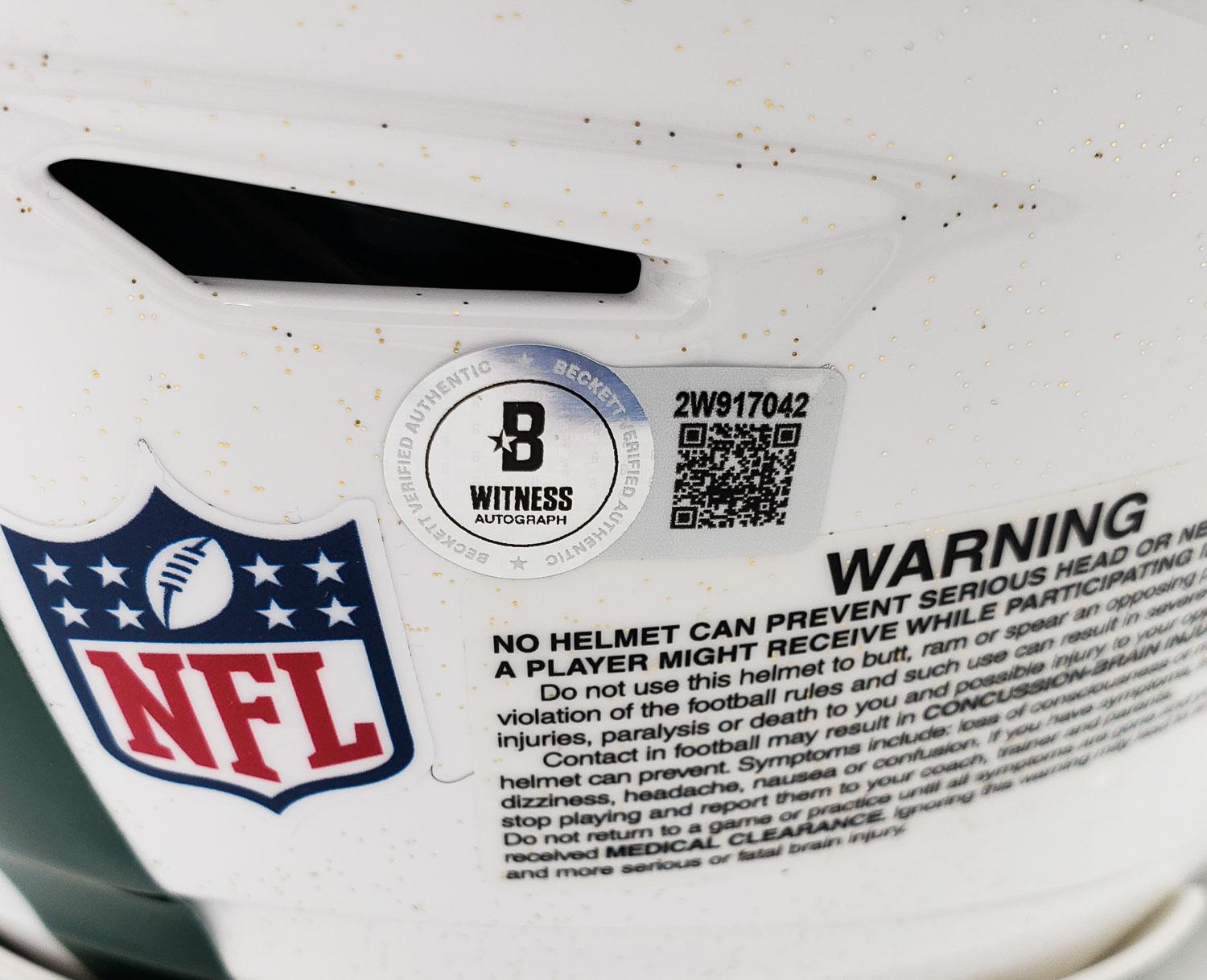 This autographed full size Riddell SpeedFlex Lunar Eclipse alternate authentic speed helmet has been personally hand-signed by Jordan Love of the Green Bay Packers. This autograph is certified by Beckett Authentication Services (BAS) Witness Certification. That means that a Beckett representative was present when this item was signed. It comes with the numbered authentication hologram with a QR code that verifies the authentication on the Beckett website.