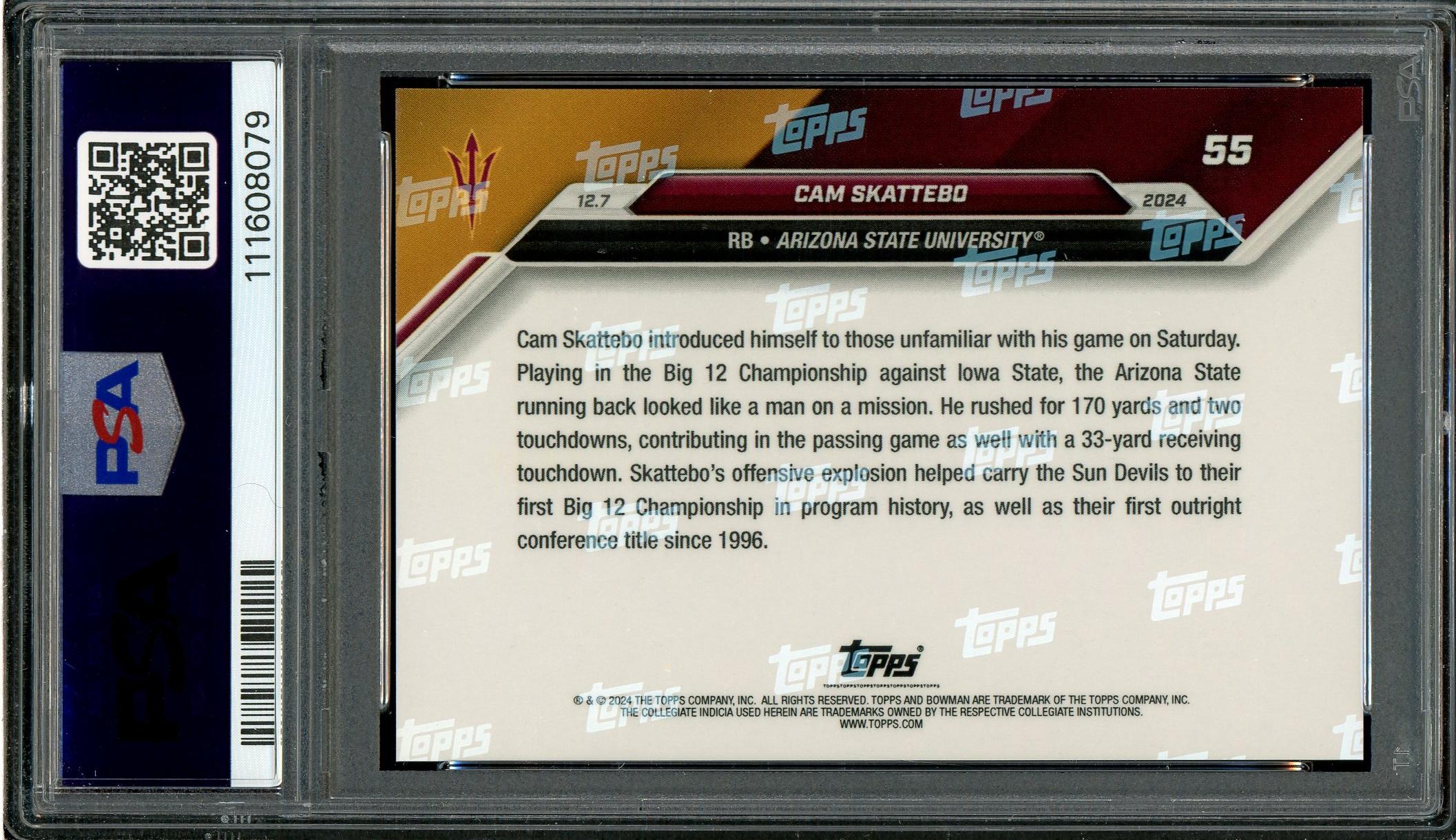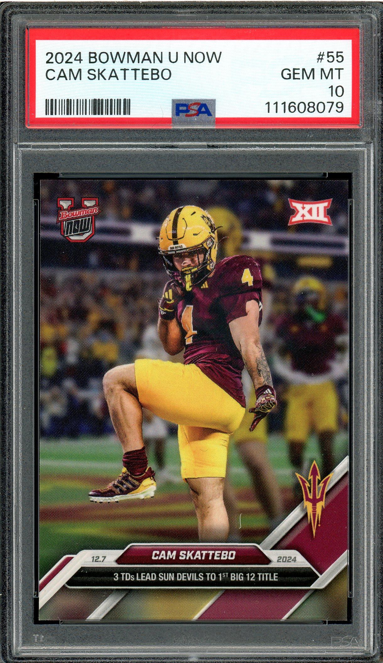 Cam Skattebo Arizona State Sun Devils 2024 Bowman U Now Rookie Card #55. This card has been graded Gem Mint 10 by PSA (Professional Sports Authenticators)!
