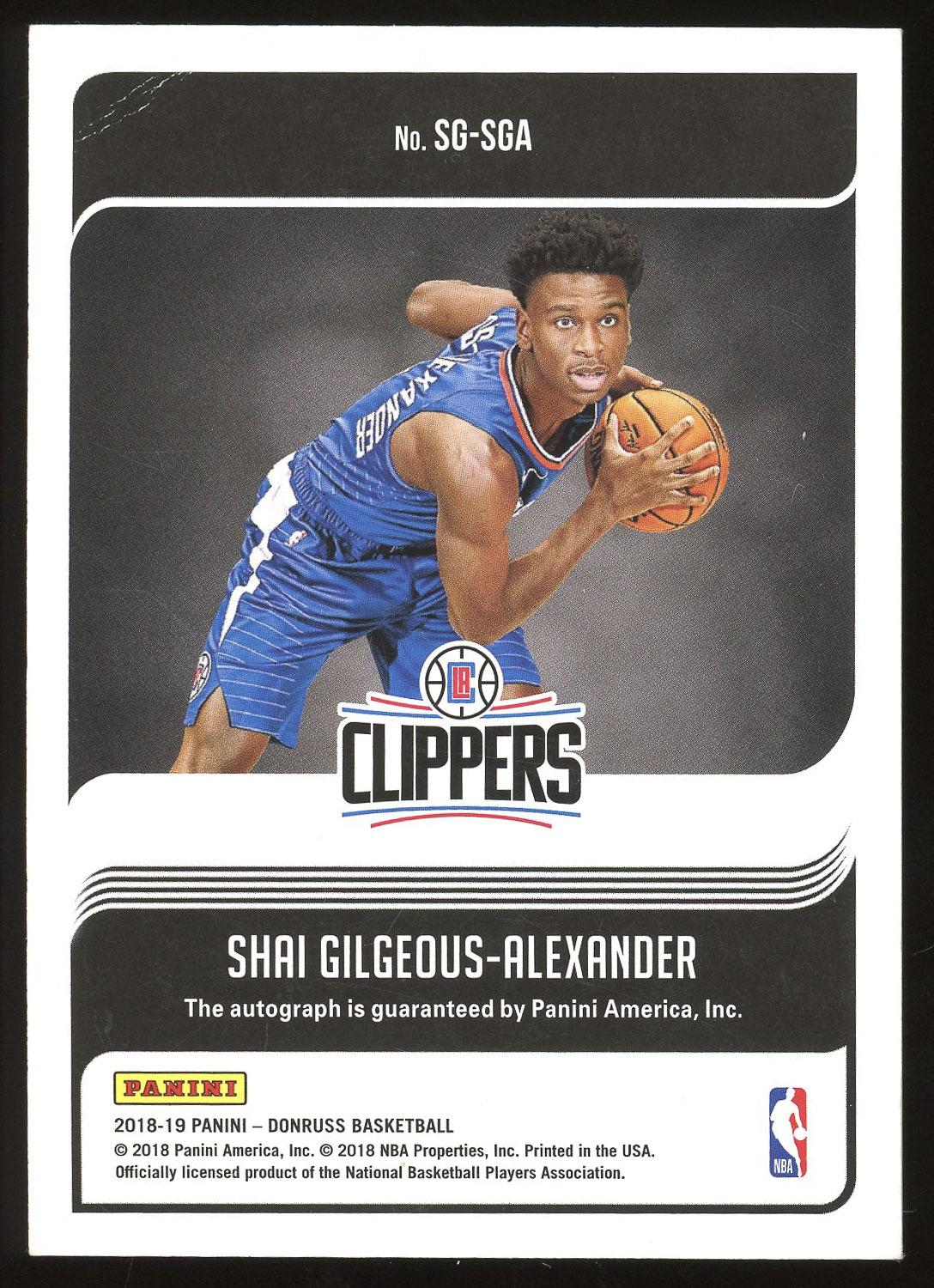 Shai Gilgeous Alexander Los Angeles Clippers 2018 Donruss Signature Series Autograph Rookie Card. Please see pictures for details on the condition of this card. *Please note the crease on the reverse of this card in the top left corner.*
