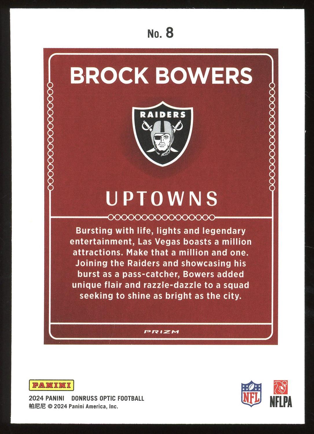 Brock Bowers Oakland Raiders 2024 Panini Donruss Optic Uptowns Rookie Card #8. Please see pictures for details on the condition of this card.