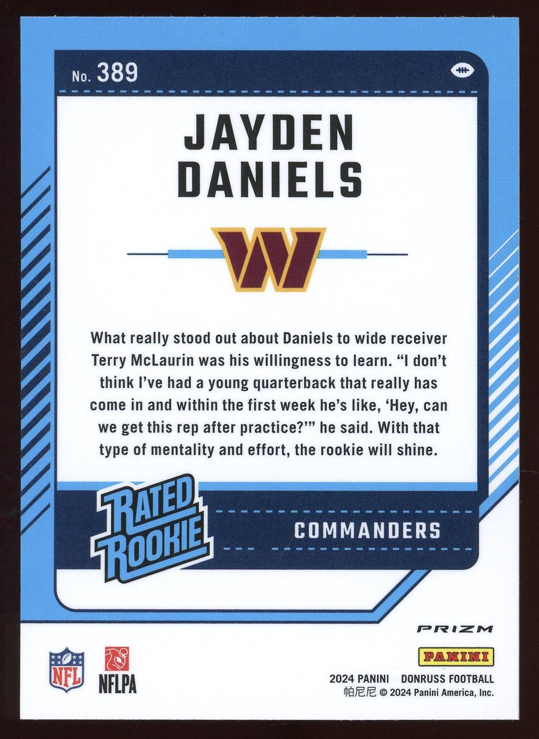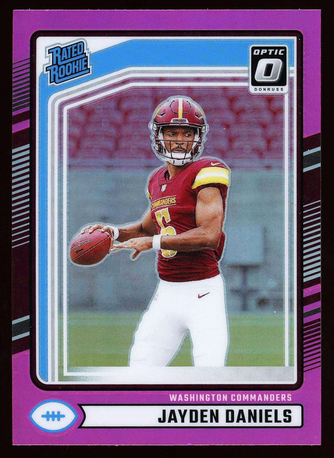 Jayden Daniels Washington Commanders 2024 Panini Donruss Optic Pink Rated Rookie Card #389. Please see pictures for details on the condition of this card.